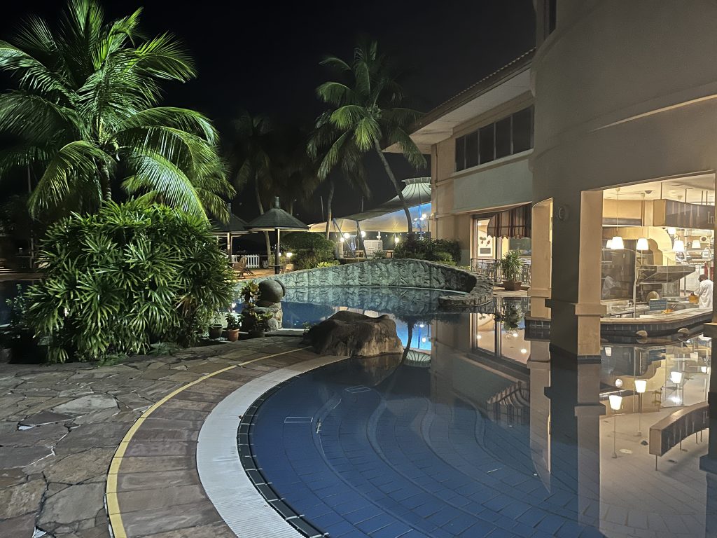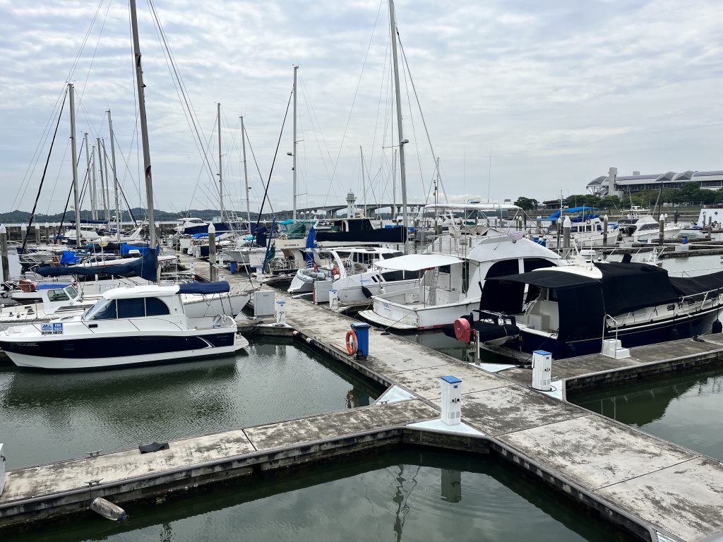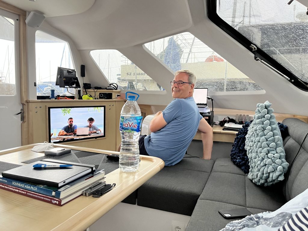 Entspannungsessen im BistroRaffles Marina SingapurSuchbild: Wo ist Yuti?TV ist installiert👏