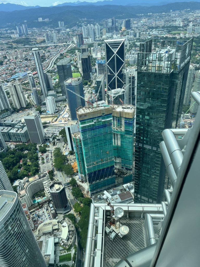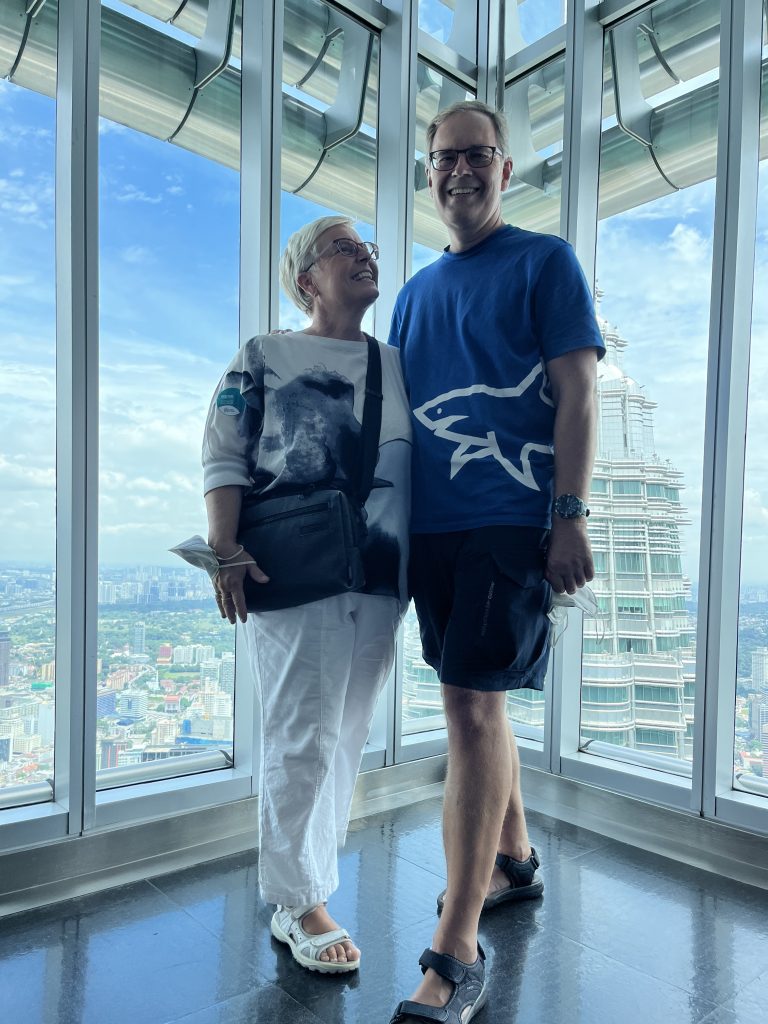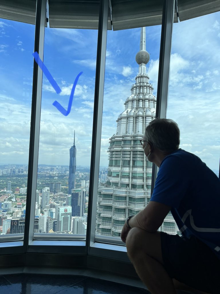 Wie festzustellen ist, sind wir gerade im Petronas Twin, im 86. Stock und bestaunen die Aussicht!