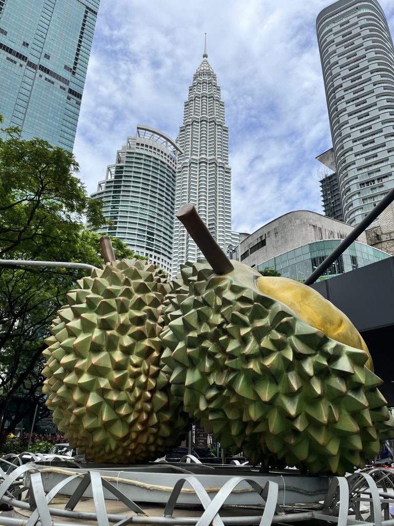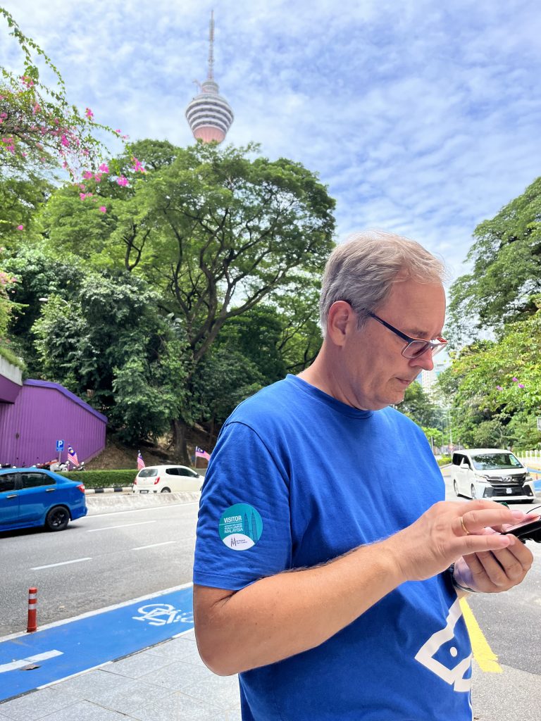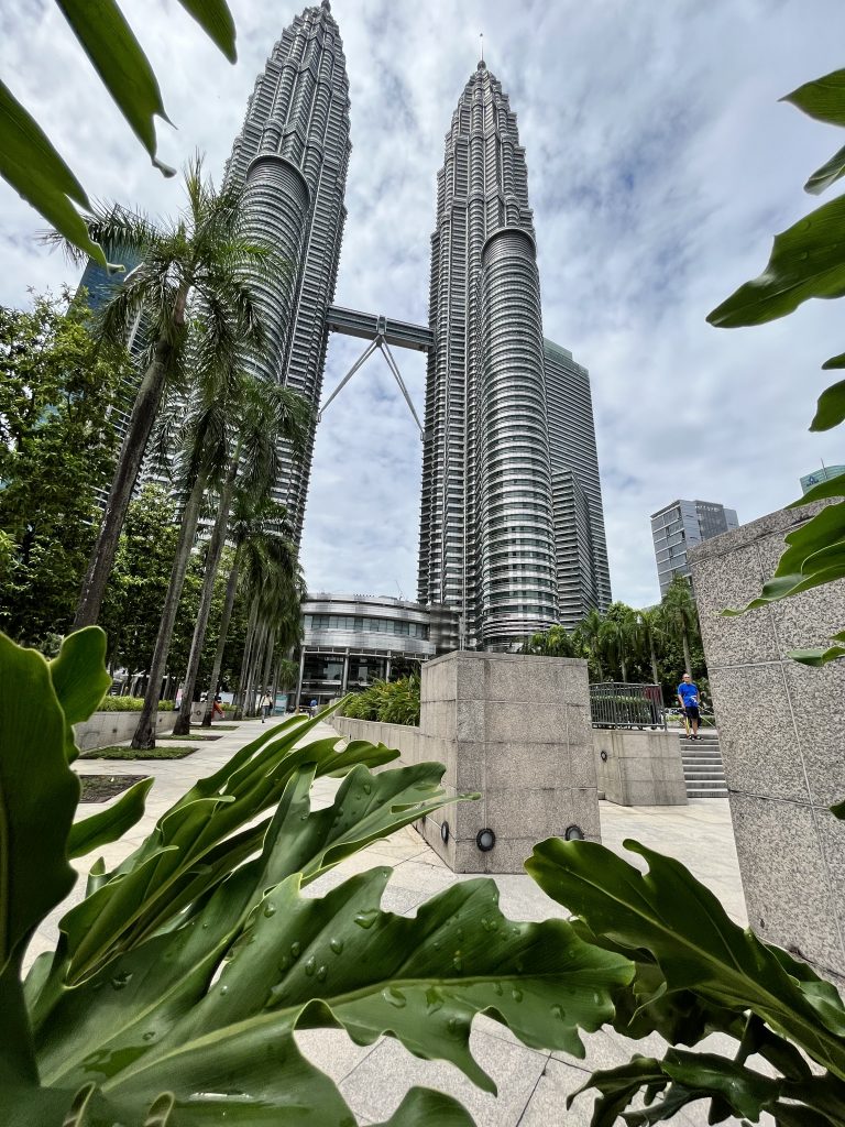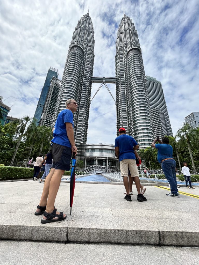 Guten Morgen 😘. Es regnet Bindfäden und ich hatte gewaschen, heimlich, in der Marina, und alles zum Trocknen rausgehängt. Jetzt ist die Wäsche tropfnass… Und wir wollen heute nach Kuala Lumpur, der Hauptstadt Malaysias. Irgendwann wappnen wir uns mit dem gestern gekauften Regenschirm, bestellen uns ein Grab und machen uns auf die 1 1/2 stündige Fahrt. Der Fahrer ist nett, will wieder alles wissen, unbedingt nen BMW haben 😆 und fährt nen flotten Stiefel. Er arbeitet noch bei der Feuerwehr… 🚒. Wir wollen ja eigentlich ins Zentrum. Sentrum, ja, mit S geschrieben ist bei denen der zentrale Busbahnhof. Da fährt er uns auch hin, und da man bei Grab im Vorhinein Start und Endpunkt angeben muss, ist das dann auch unser Endpunkt. 😆 Ist aber nicht das Stadtzentrum. Trotz dem, dass hier alles recht verwirrend ist, geling es uns die richtige U-Bahn, die richtige Strecke und den richtigen Haltepunkt zu finden und uns einen Token/Coin zu beschaffen und los geht die Fahrt… Wir laufen noch ein bisschen und tadaaa, stehen wir vor den beeindruckenden Petronas Twin Towers! 👏