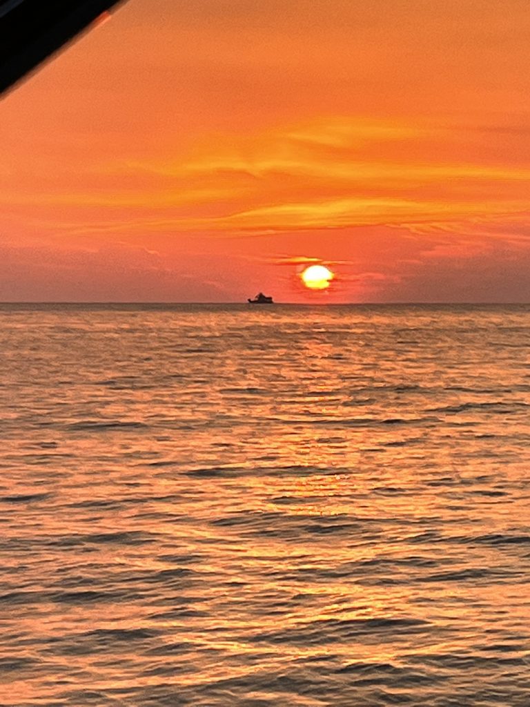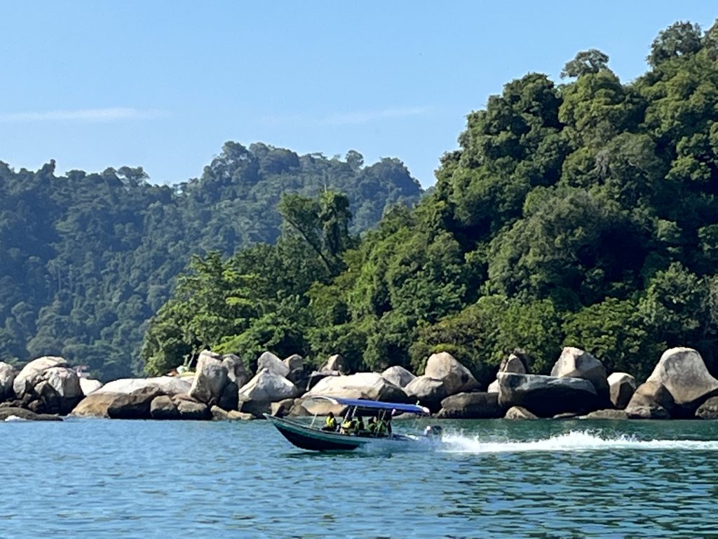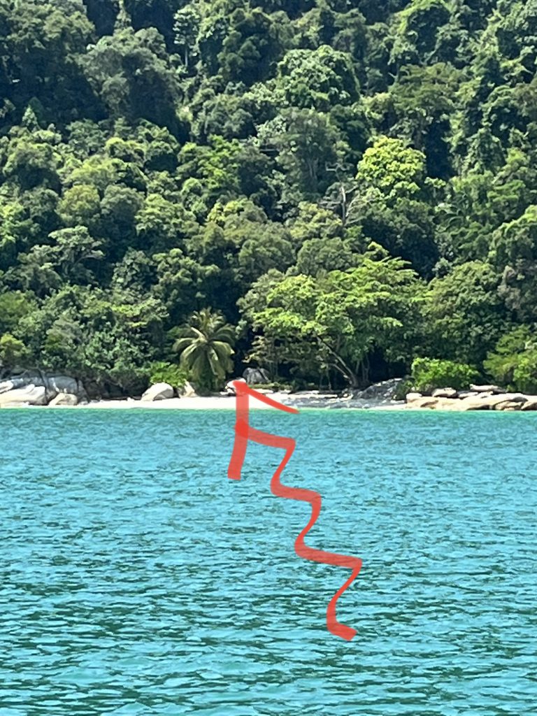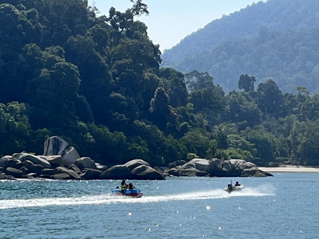 Nun sagen wir Pangkor tschüß und starten unseren Törn nach Langkawi. Drei Tage haben wir geplant, wollen aber nicht über Nacht fahren, der vielen Fischerboote wegen, wir wollen nachts lieber ankern.⚓️ Ungefähr 140 Seemeilen liegen vor uns, davon machen wir heute aber nur einen kleinen Hupfer von gerade mal 10 Seemeilen. Wir fahren von der Festlandmarina Pangkor um die vorgelagerte Insel, Pulau Pangkor herum, ankern und wollen endlich mal “fun in the sun”.😎 Gesagt, getan, wir sehen den Inselspaß schon vor uns…