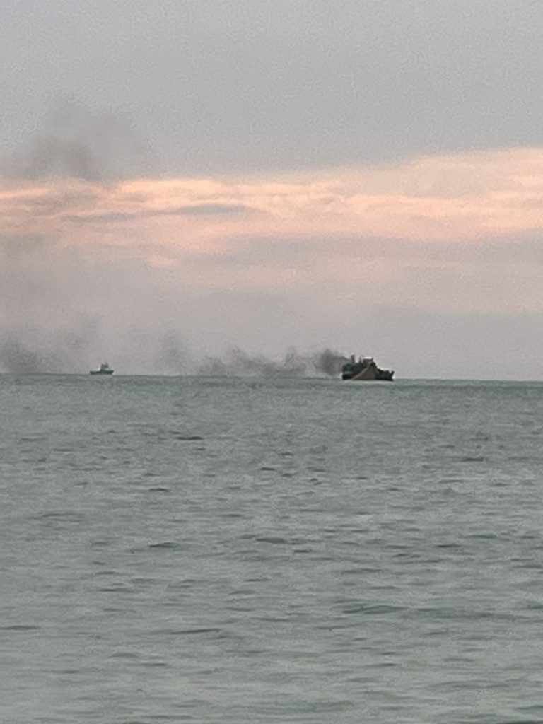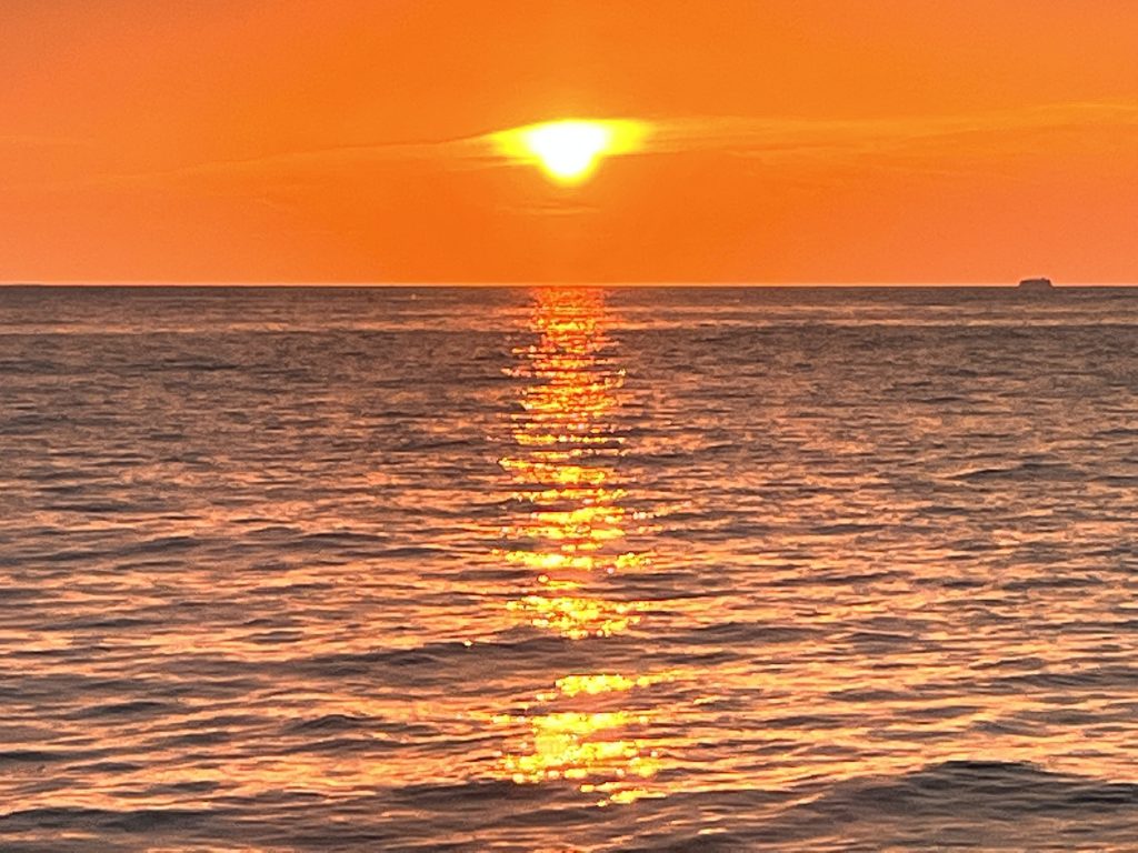 Nee, aber was verbrennt der da, Schweröl? Puhh, was für ein Stinker! Da lob ich mir den super schönen Sonnenuntergang am Abend!