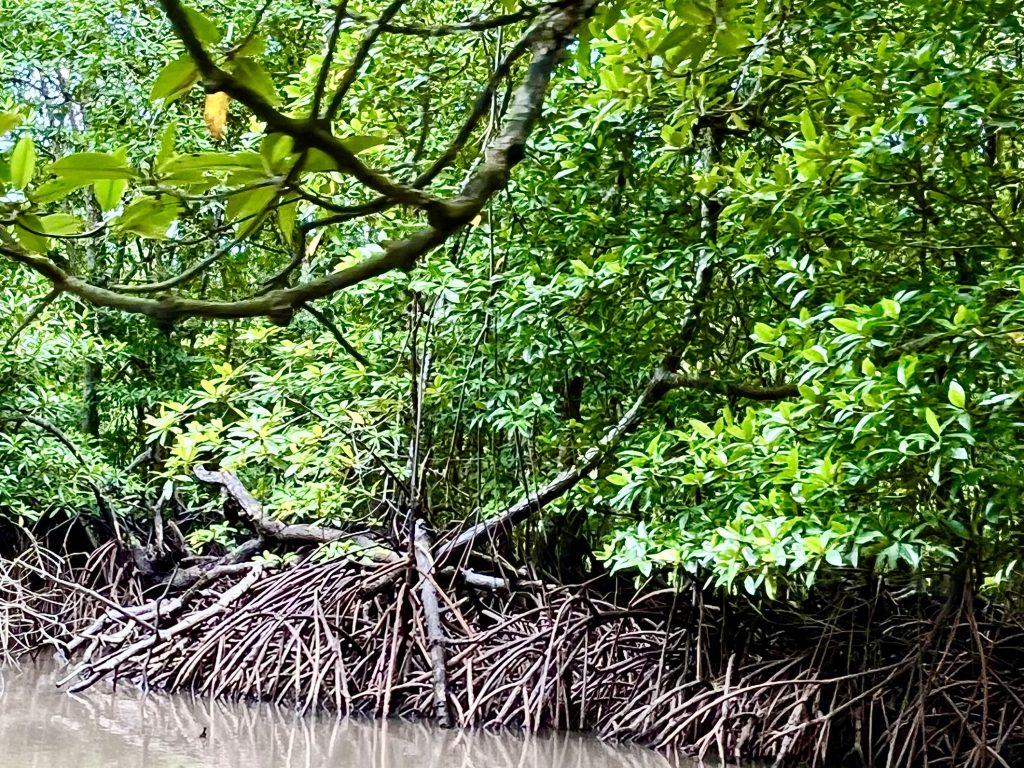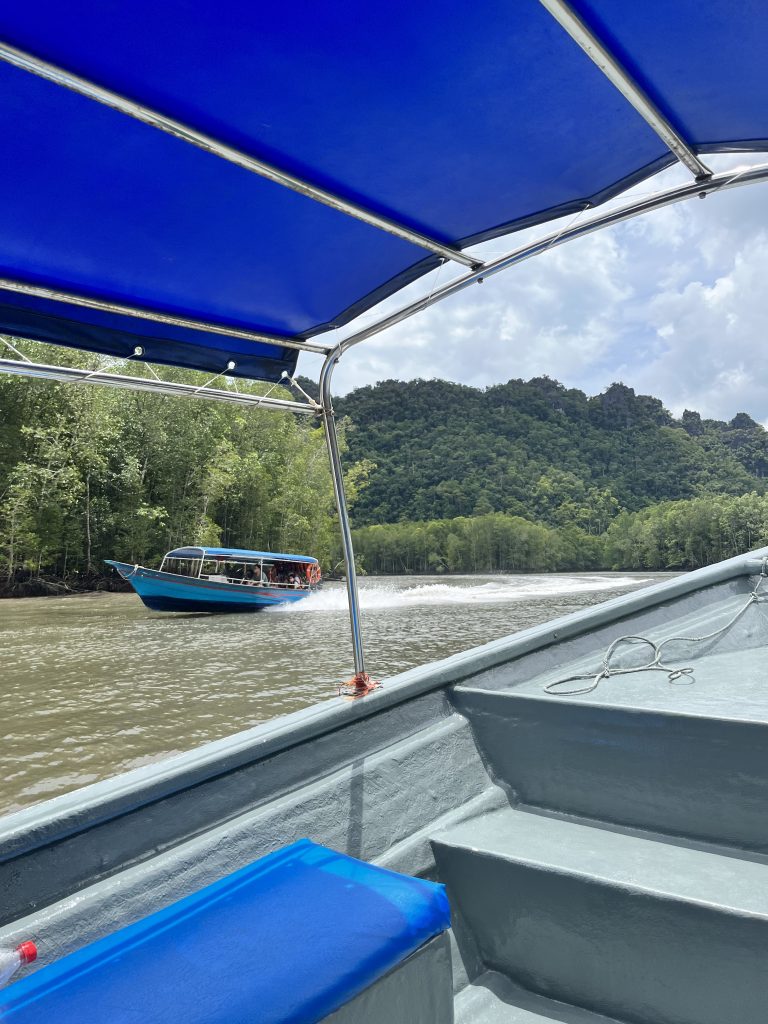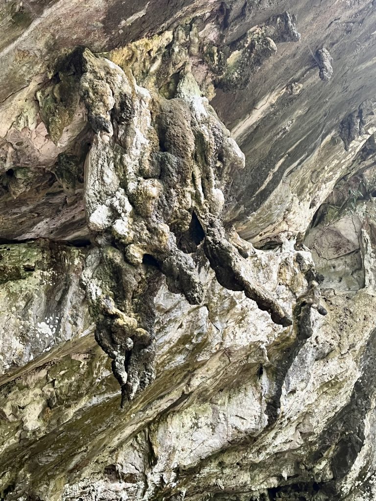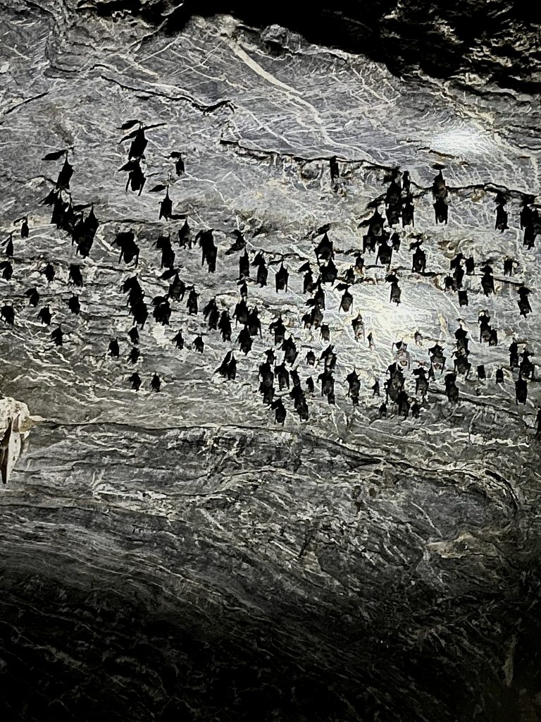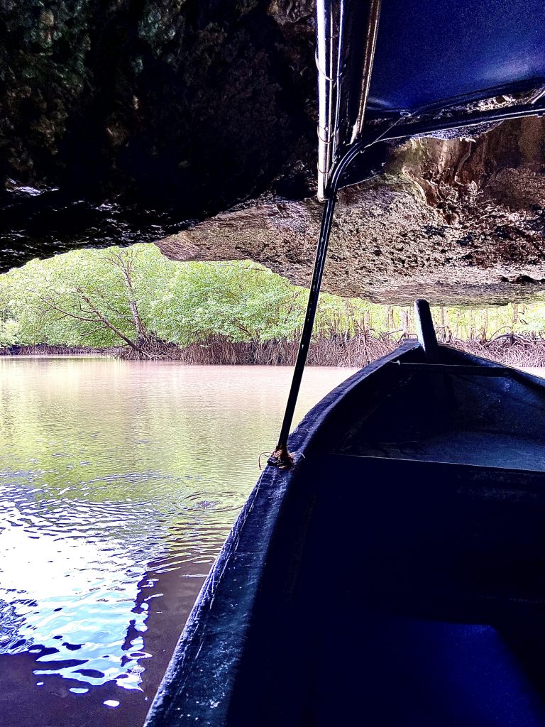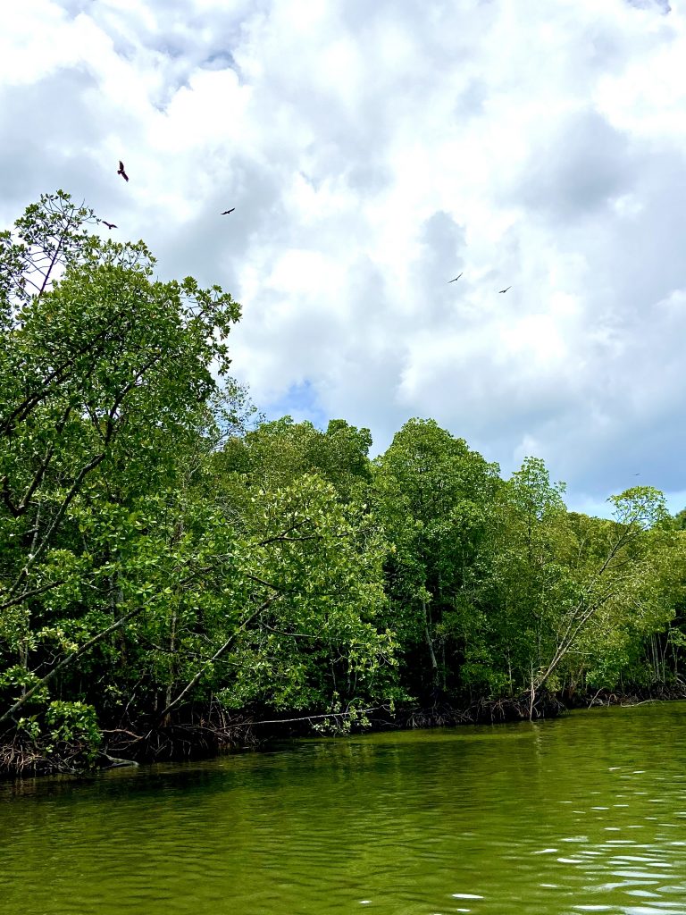 Apropos, Mangroven… Das wurde dann unser nächste Ausflug. Obwohl, gänzlich ungeplant. Eigentlich wollten wir auf den nächsten höheren Berg, in der Hoffnung auf Abkühlung. Klaus bestellt ein Grab. Das erste sagt ab, das zweite auch, komisch, das dritte kommt dann endlich und fährt mit uns los. Am Fuße des Berges dann das, Straße ist wegen Bauarbeiten gesperrt. Shit! Was nun? Ob er uns auch woanders hinfahren kann? Ja, ist möglich. Diskutier hin, diskutier her, es fallen Begriffe wie Geopark, Mangroven… Ja, genau, da wollte ich eh hin. Also los. Und so kamen wir zu unserem Ausflug in die Fledermaushöhlen, den Mangroven, dem Seeadlerhotspot, der Krokodilhöhle und einer Fischfarm. Schön war’s!