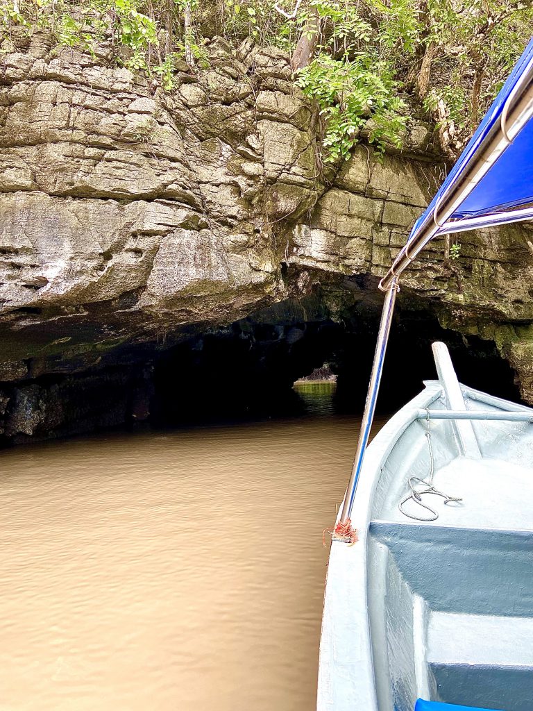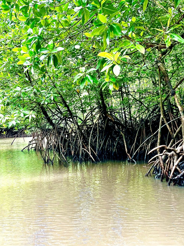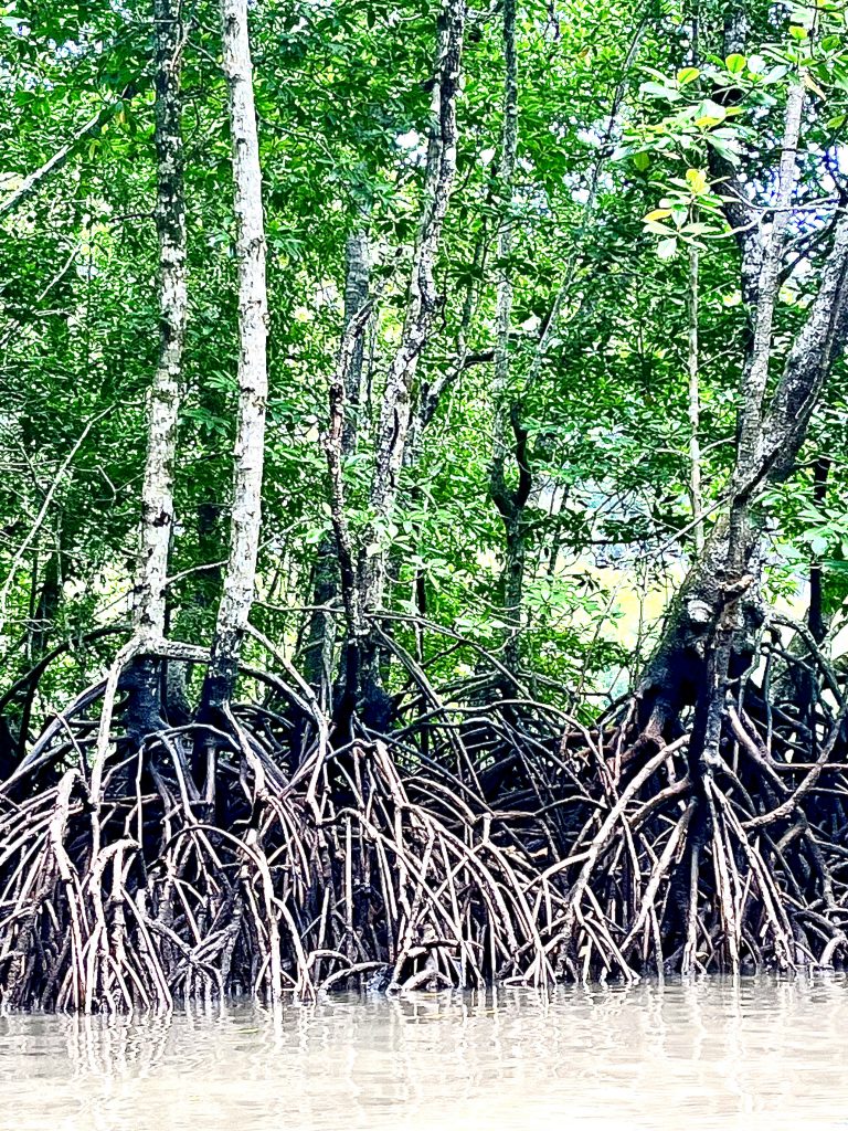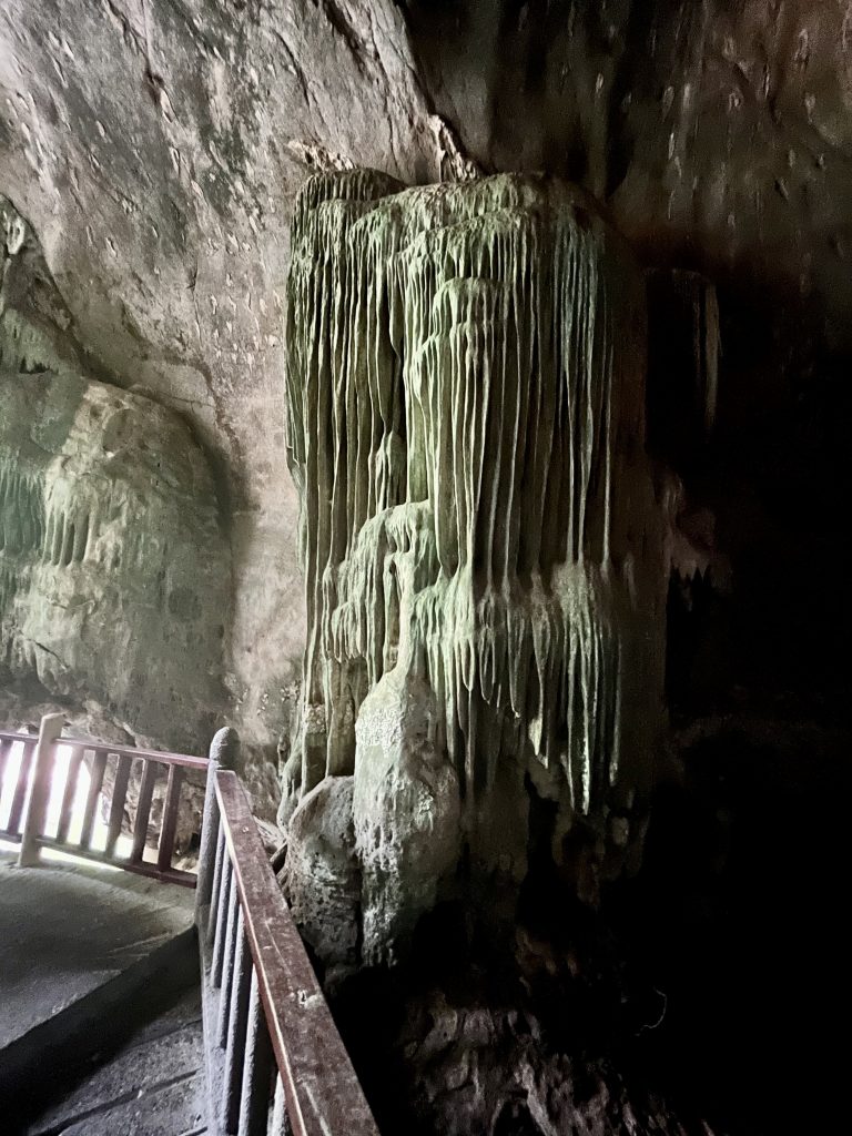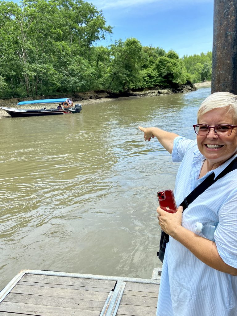 Apropos, Mangroven… Das wurde dann unser nächste Ausflug. Obwohl, gänzlich ungeplant. Eigentlich wollten wir auf den nächsten höheren Berg, in der Hoffnung auf Abkühlung. Klaus bestellt ein Grab. Das erste sagt ab, das zweite auch, komisch, das dritte kommt dann endlich und fährt mit uns los. Am Fuße des Berges dann das, Straße ist wegen Bauarbeiten gesperrt. Shit! Was nun? Ob er uns auch woanders hinfahren kann? Ja, ist möglich. Diskutier hin, diskutier her, es fallen Begriffe wie Geopark, Mangroven… Ja, genau, da wollte ich eh hin. Also los. Und so kamen wir zu unserem Ausflug in die Fledermaushöhlen, den Mangroven, dem Seeadlerhotspot, der Krokodilhöhle und einer Fischfarm. Schön war’s!