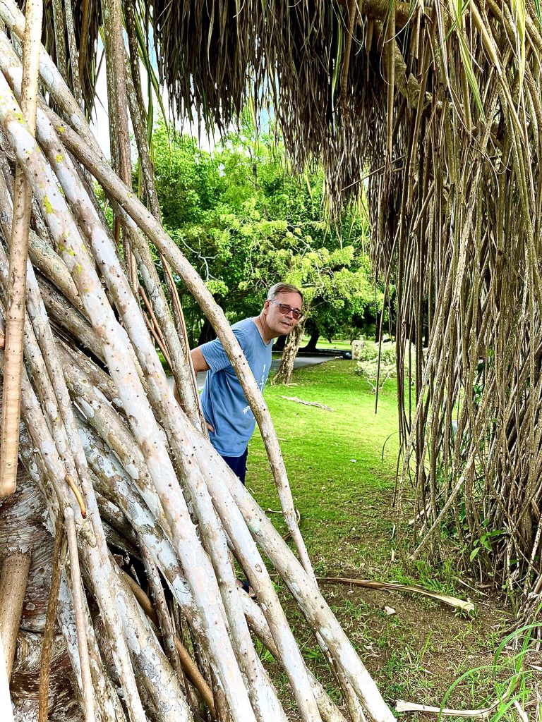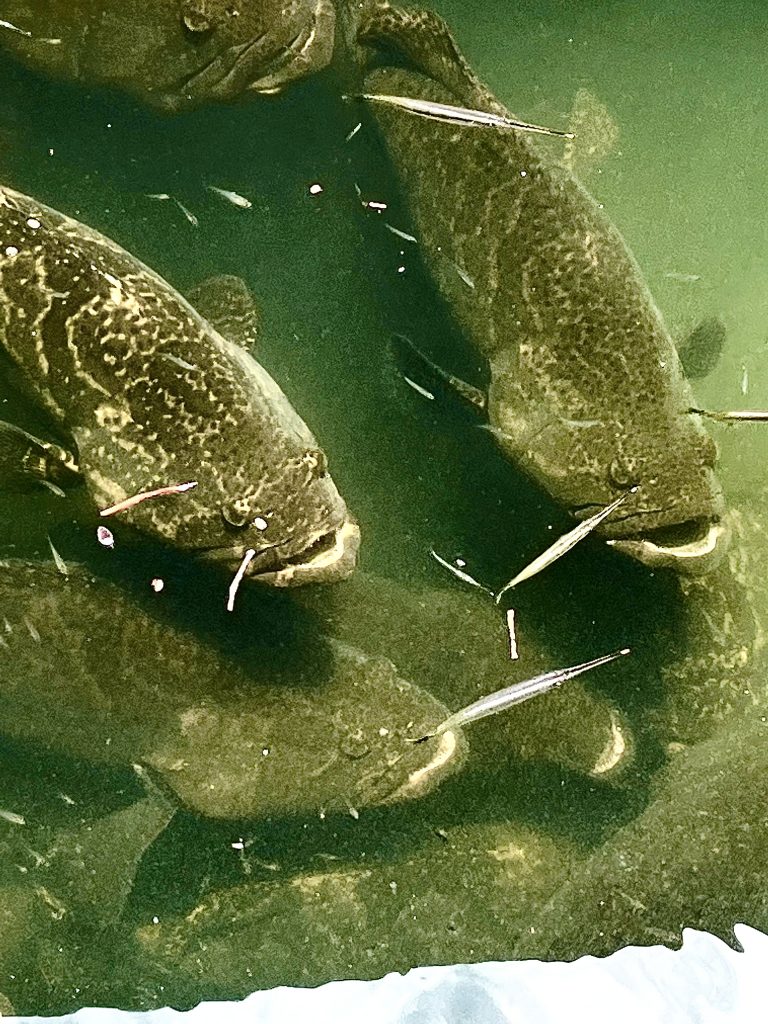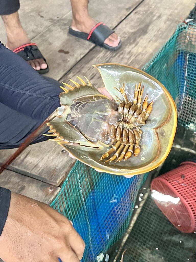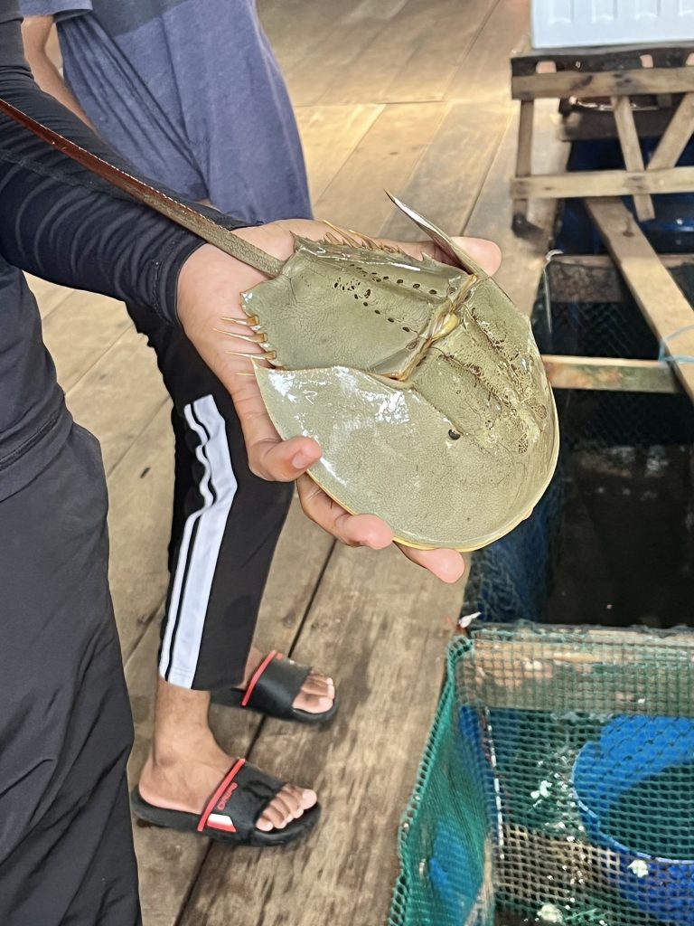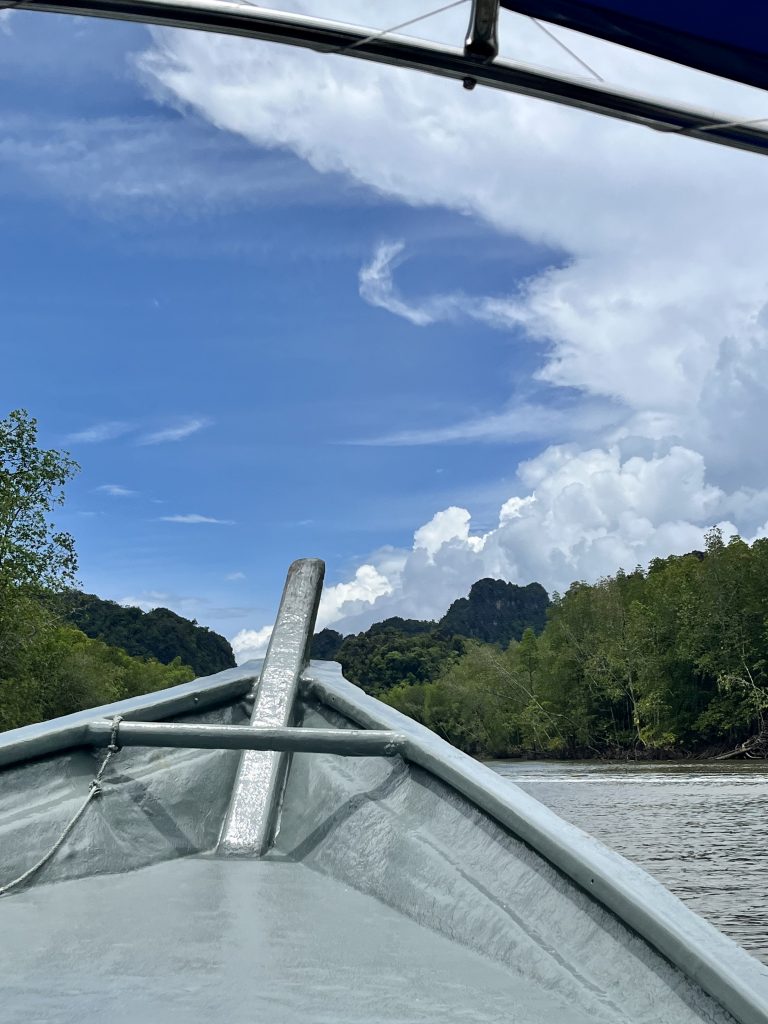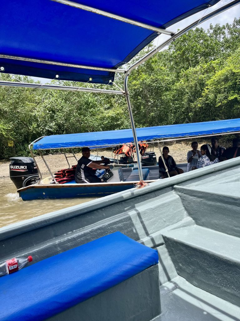 Apropos, Mangroven… Das wurde dann unser nächste Ausflug. Obwohl, gänzlich ungeplant. Eigentlich wollten wir auf den nächsten höheren Berg, in der Hoffnung auf Abkühlung. Klaus bestellt ein Grab. Das erste sagt ab, das zweite auch, komisch, das dritte kommt dann endlich und fährt mit uns los. Am Fuße des Berges dann das, Straße ist wegen Bauarbeiten gesperrt. Shit! Was nun? Ob er uns auch woanders hinfahren kann? Ja, ist möglich. Diskutier hin, diskutier her, es fallen Begriffe wie Geopark, Mangroven… Ja, genau, da wollte ich eh hin. Also los. Und so kamen wir zu unserem Ausflug in die Fledermaushöhlen, den Mangroven, dem Seeadlerhotspot, der Krokodilhöhle und einer Fischfarm. Schön war’s!