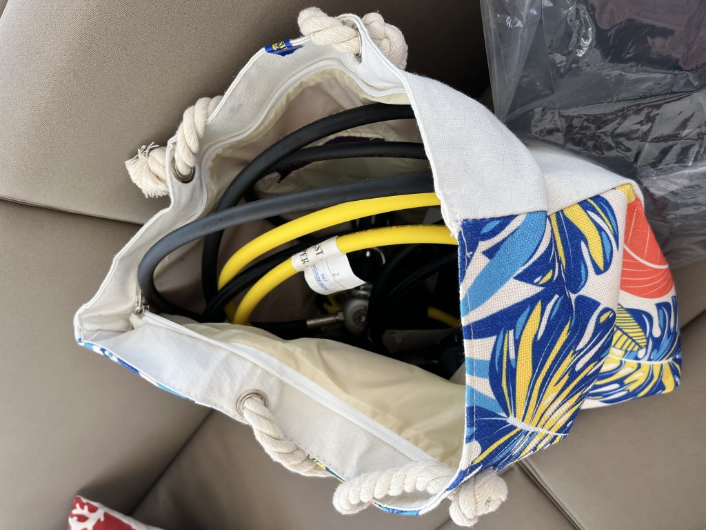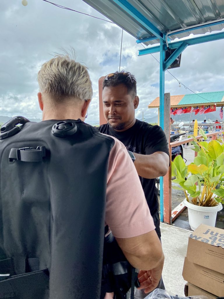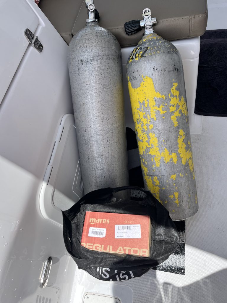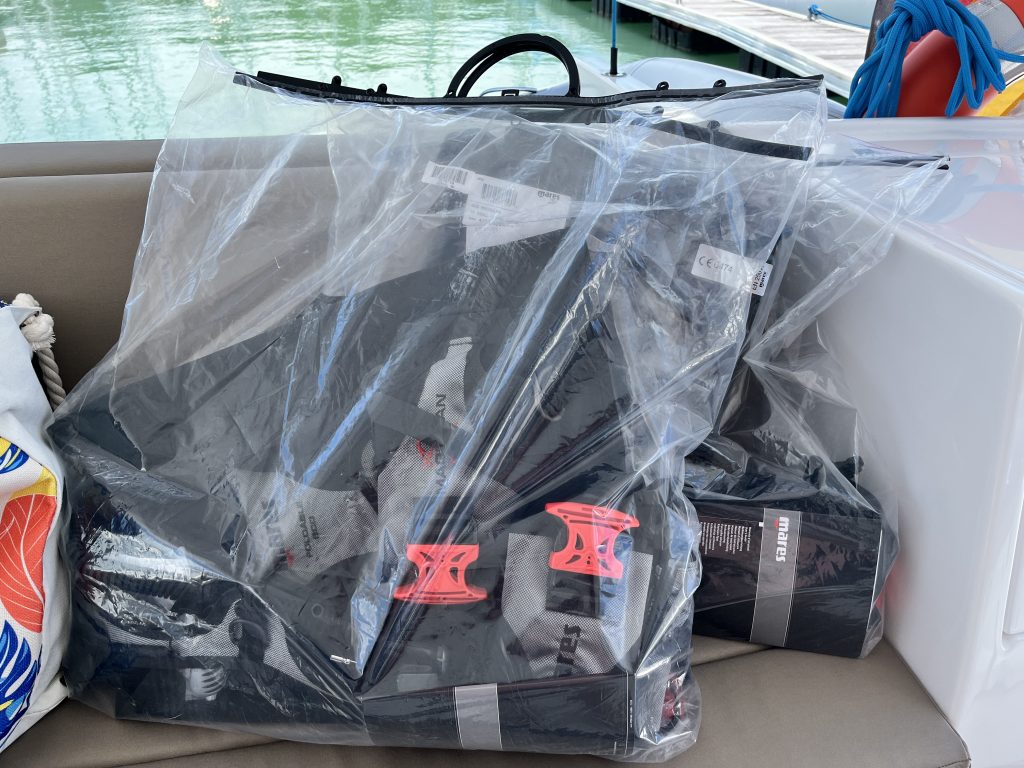 Heute, einen Tag früher als erwartet, meldet sich Ejay und sagt, wir können alles abholen, die Taucherausrüstung ist vollständig und da. Supi 👏👏👏.