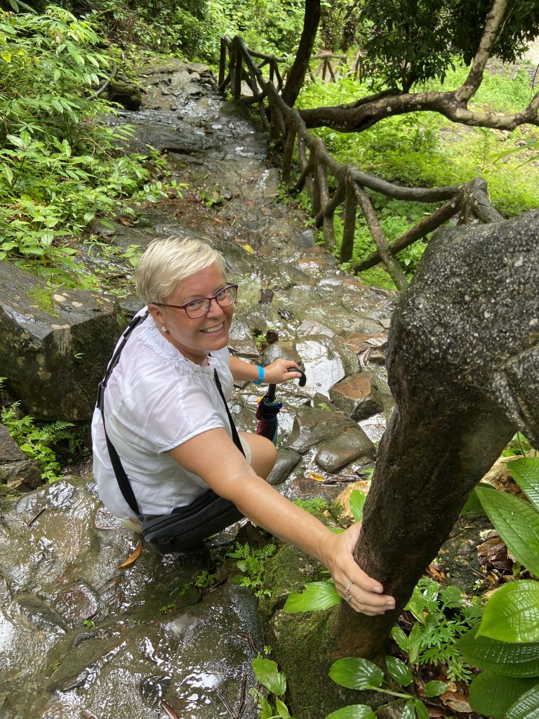 Das war doch schön hier! Zwar sind auch wir nass wie der Wasserfall, denn die Luft ist satt an Feuchtigkeit und sie schlägt an uns nieder. Doch die Eindrücke sind tief! Nun geht’s wieder zum Wagen und ab nach Hause. Stop, stimmt ja gar nicht. Wir sind ganz in der Nähe vom ”The Cliff” Restaurant, machen die Biege und gehen noch lecker essen.