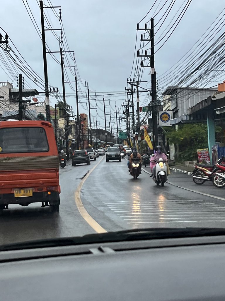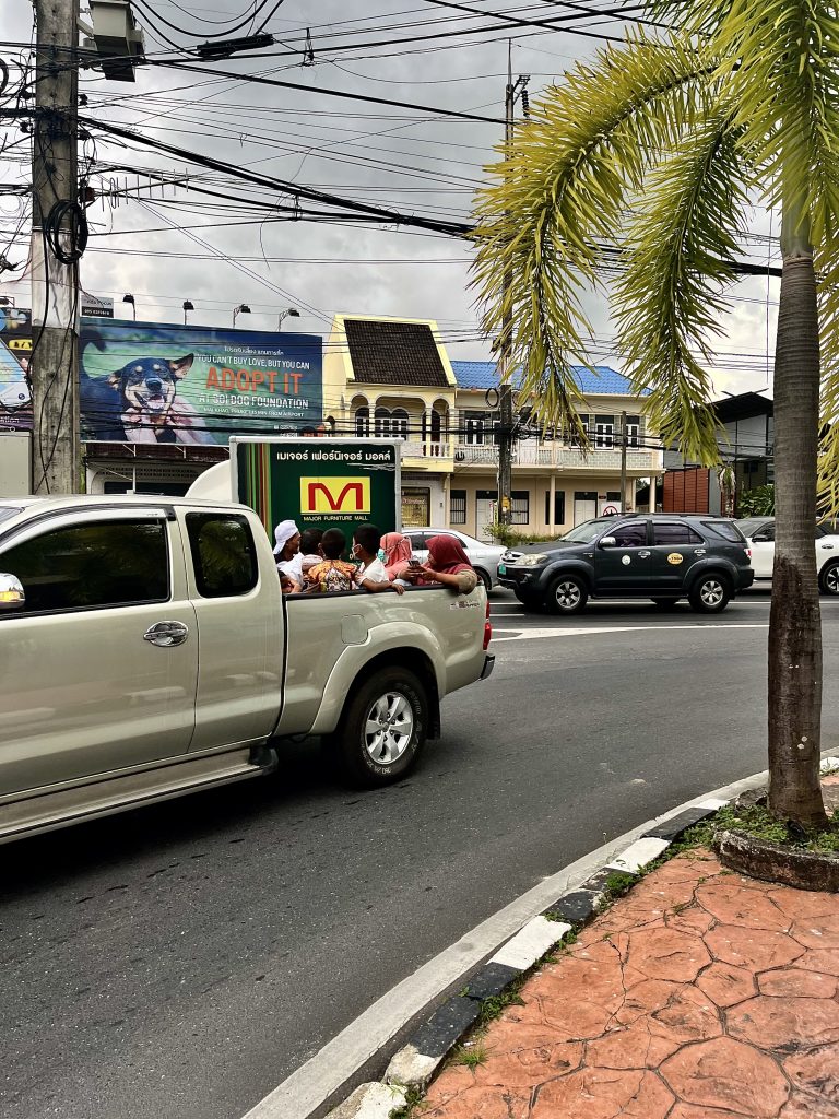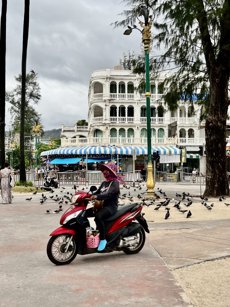Heute mal nicht Strand, sondern der Besuch einer großen Mall steht auf dem Stundenplan und danach der empfohlene, sonntägliche Nachtmarkt. Alla hopp! Wir legen mittlerweile schon ganz schöne Strecken zurück, mit unserem Leihwagen. Ich habe mich mittlerweile, nach etwas Gezeter, zur passablen Navigatorin gemausert und Klaus klickt nur noch jedes dritte Mal den Scheibenwischer statt des Blinkers an 😆. Es ist gar nicht so einfach, hier im Straßenverkehr zu bestehen. Erstmal der nicht zu unterschätzende Linksverkehr und dann die vielen Roller, Lastenroller, LKW’s und Autos, die sich nicht an die auch hier bestehenden Verkehrsregeln halten. Es wird wild überholt, geschnippelt, regelmäßig über durchgezogene Linien gefahren und manchmal erscheint ein Roller auch auf der falschen Straßenseite und braust einem entgegen. Apropos, die Roller. Die sausen überhaupt sehr waghalsig und pfeilschnell durch die Gegend. So schnell kannst du kaum gucken, wie von links, rechts oder hinten einer angesaust kommt. Und dann ist da noch unsere schwache Motorisierung… Nun ja, wir erreichen trotzdem unsere Mall “Central Phuket Floresta”! 😅