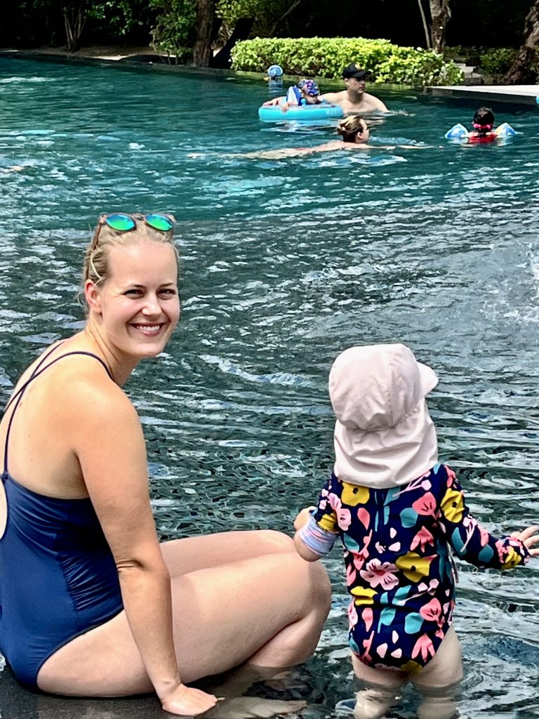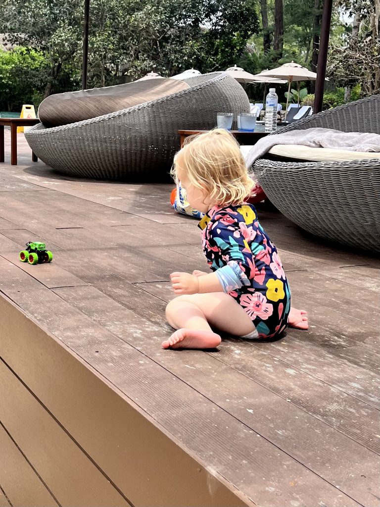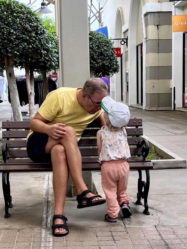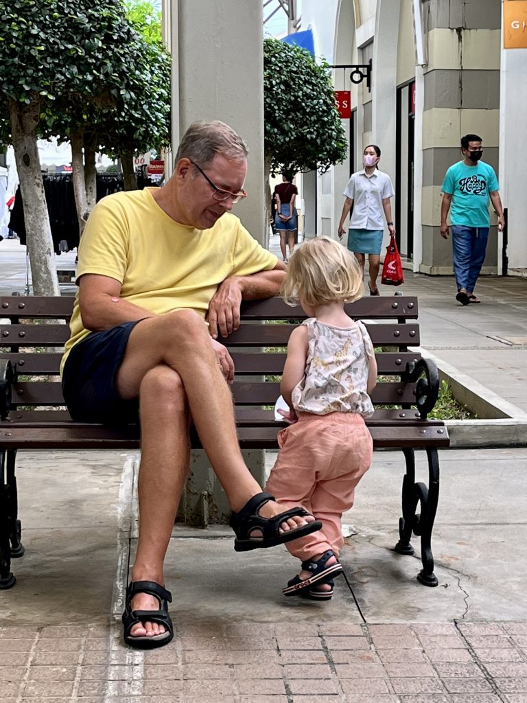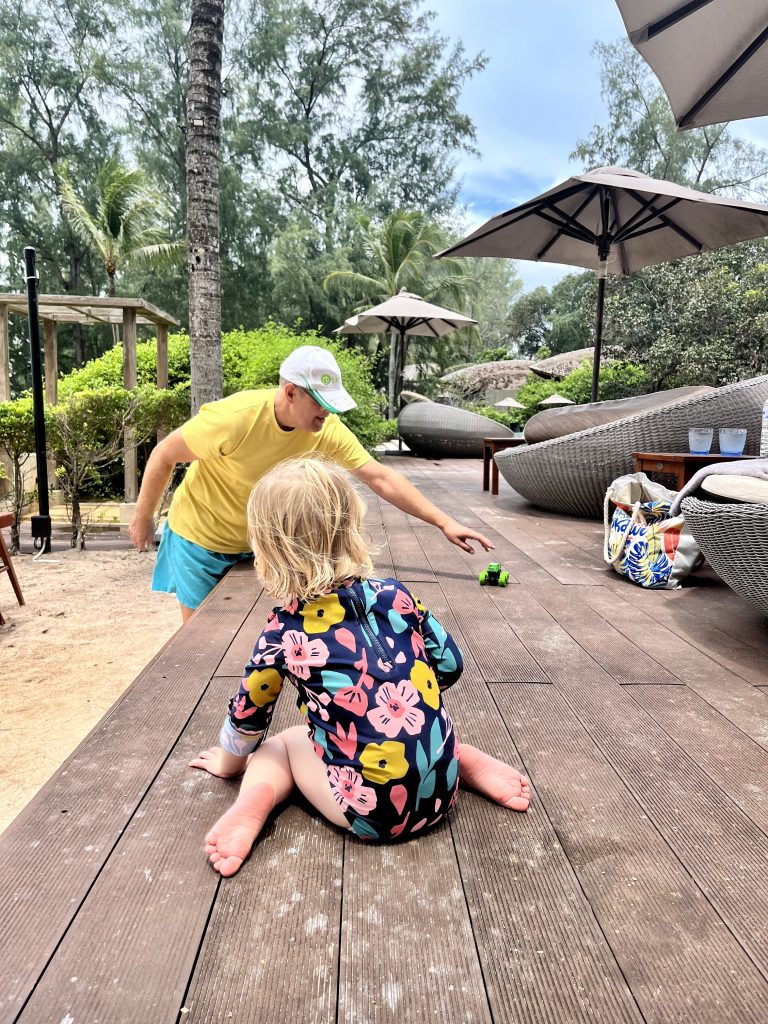 Seit vergangenem Donnerstag sind Larissa, Norman und Alva nun bei uns. Schon das Abholen vom Flughafen war aufregend. Haben sie die lange Reise gut überstanden? Wie erging es unserer kleinen Enkeltochter? Erst der Flug von Frankfurt nach Doha und dann von Doha nach Phuket…🛫🛬🛫🛬 , ganz schön viel für eine 2 Jährige! Dann stehen wir auf der Empfangsseite und warten, warten, warten…, bis wir sie endlich erblicken, wir winken und hüpfen. Alva sieht uns sofort und kommt angerannt! Mein Herz macht einen Hüpfer – endlich❣️ Wir fahren gemeinsam zur Hotelanlage und begutachten ihr Ferienhäuschen für die nächsten 2 Wochen. Alles supi! Da kann der Urlaub ja beginnen!