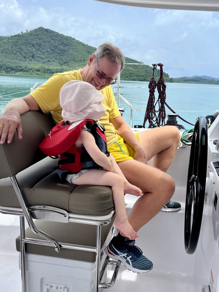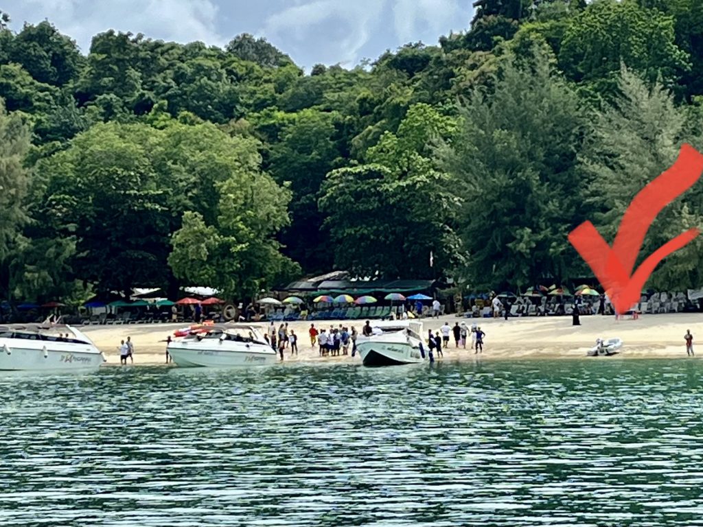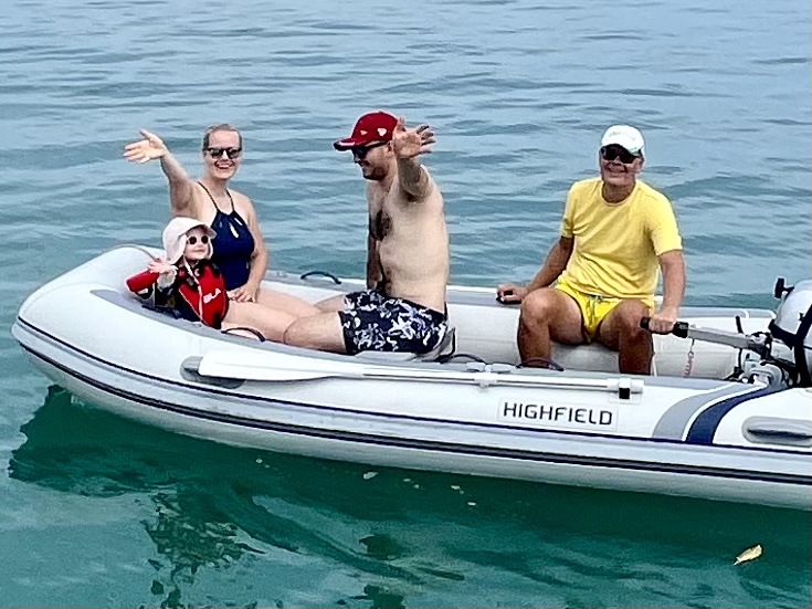 Hier ist ja was los! Mehrere Speedboote mit Touristen erreichen die Insel. Die fahren Jetski und Bananaboot und immer dicht an Yuti vorbei. Es wackelt kräftig. Ich bin an Bord geblieben und werde durchgeschüttelt. Da kommen sie auch schon wieder, meine Family. Anker lichten und ab geht‘s durch die Mitte. Über 2 Stunden liegen noch vor uns, bis wir wieder in der Marina festmachen können. Schiff ahoi!