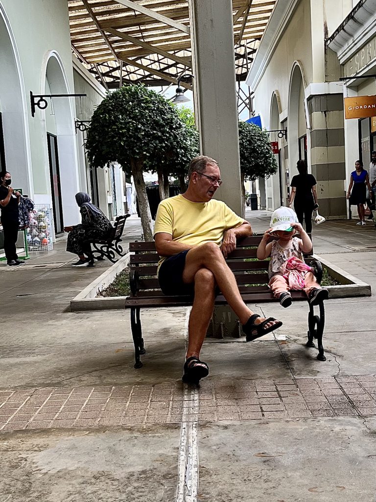 Dann geht‘s in das Outlet Center der Insel. Kissler‘s haben selbst nur wenige Klamotten eingepackt, mussten sie doch noch das ein oder andere für unser Boot mitschleppen… 😉 Jetzt wird geshoppt. Opi und Alvi warten derweil draußen.