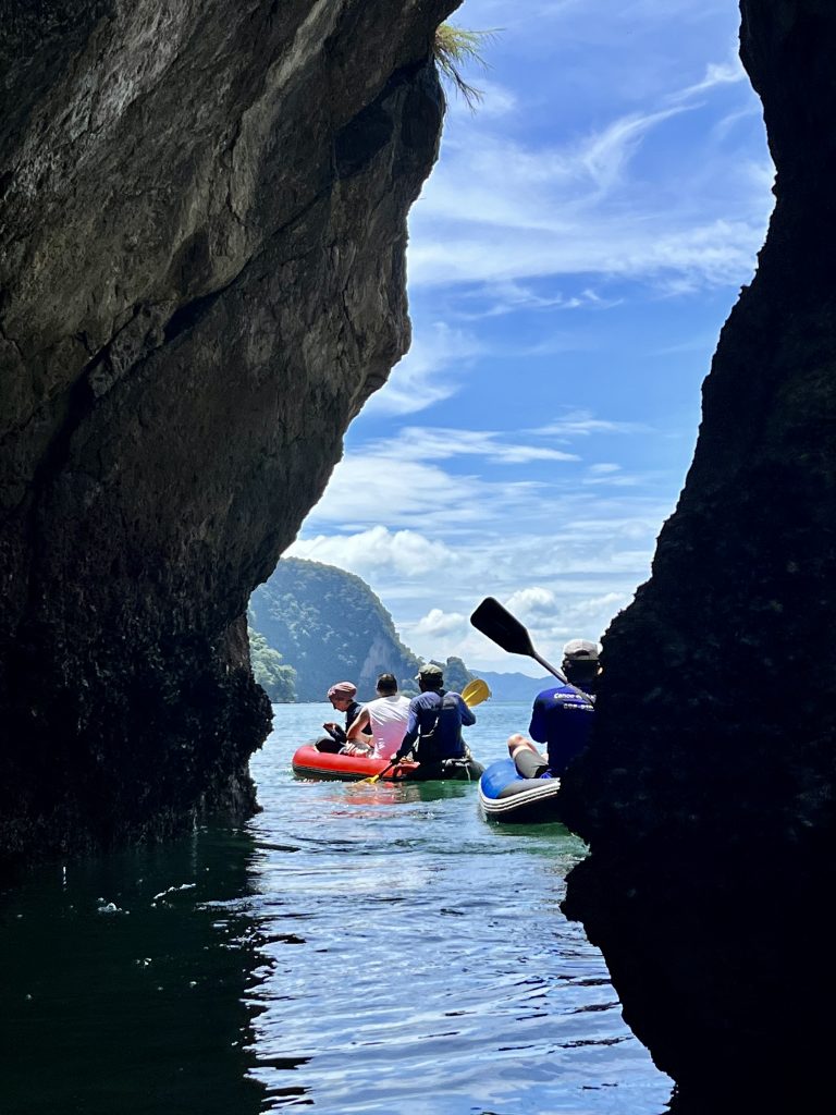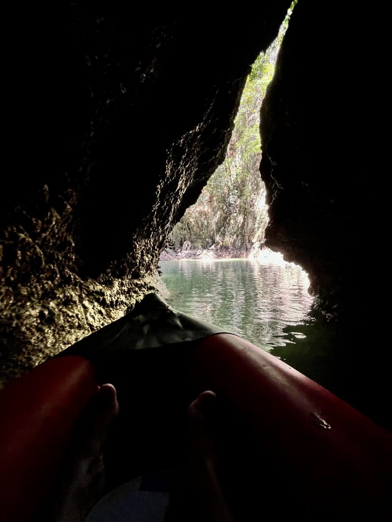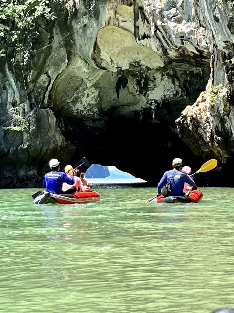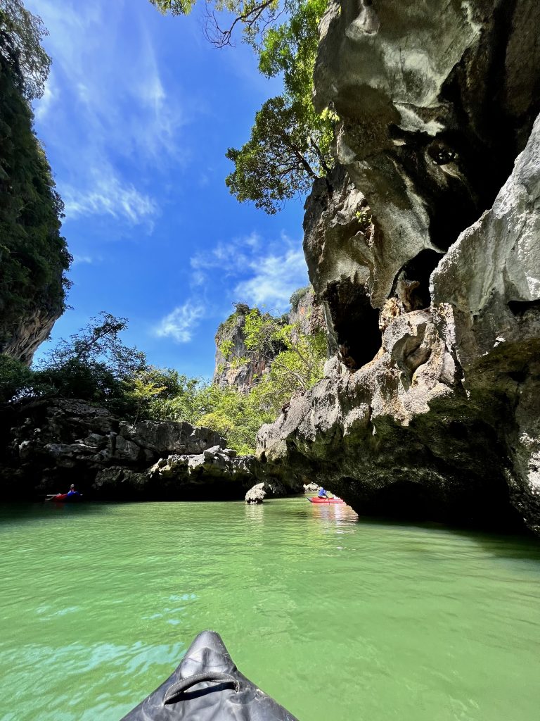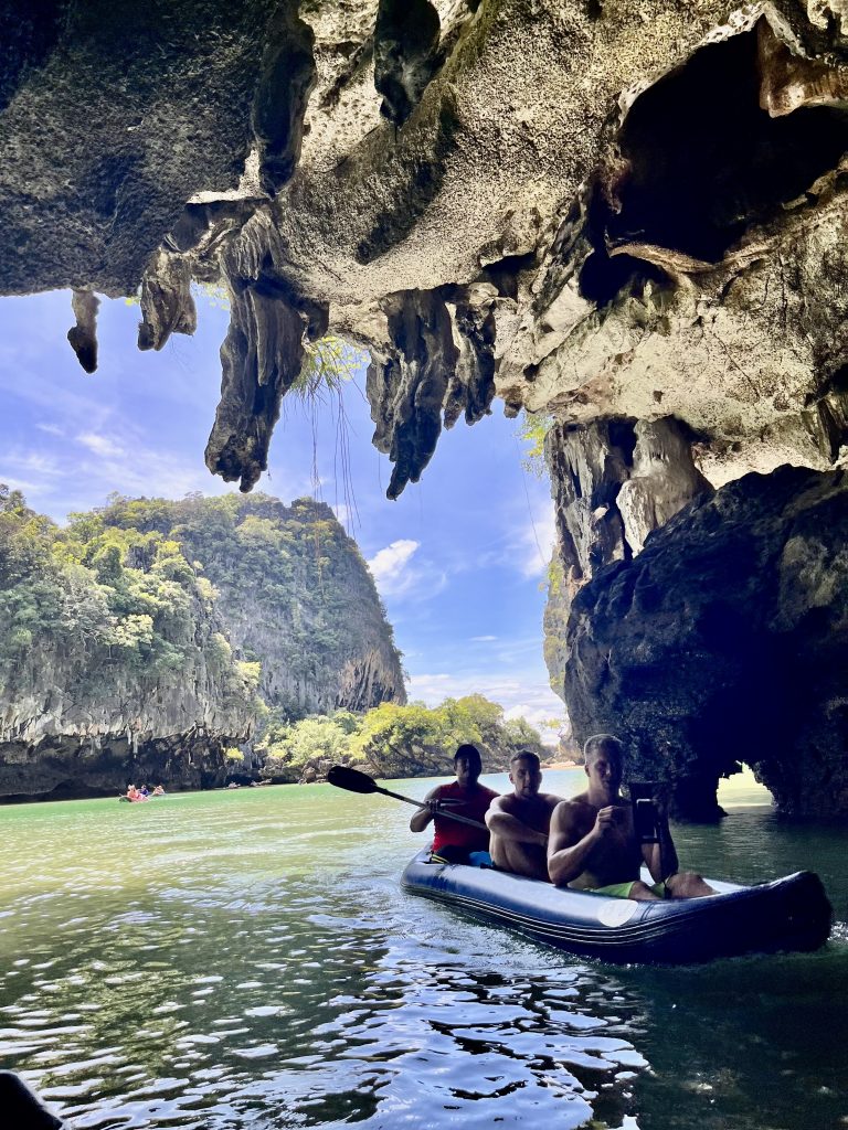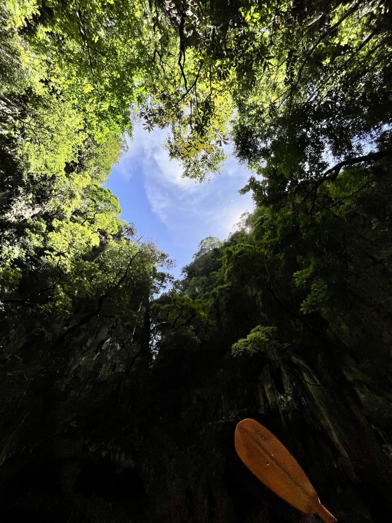 Ja, wir werden gepaddelt! Bloß nicht zu viel Anstrengung… 😎 Nein, nur die Guides wissen wo genau hin, wo gibt es die Besonderheiten zu sehen und wo stößt man sich nicht die Rübe. 😆