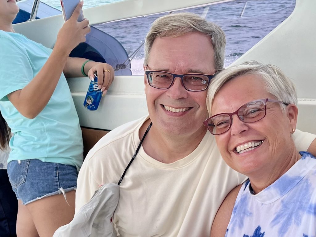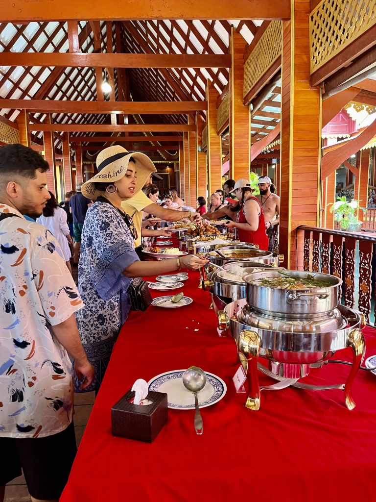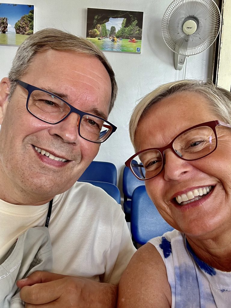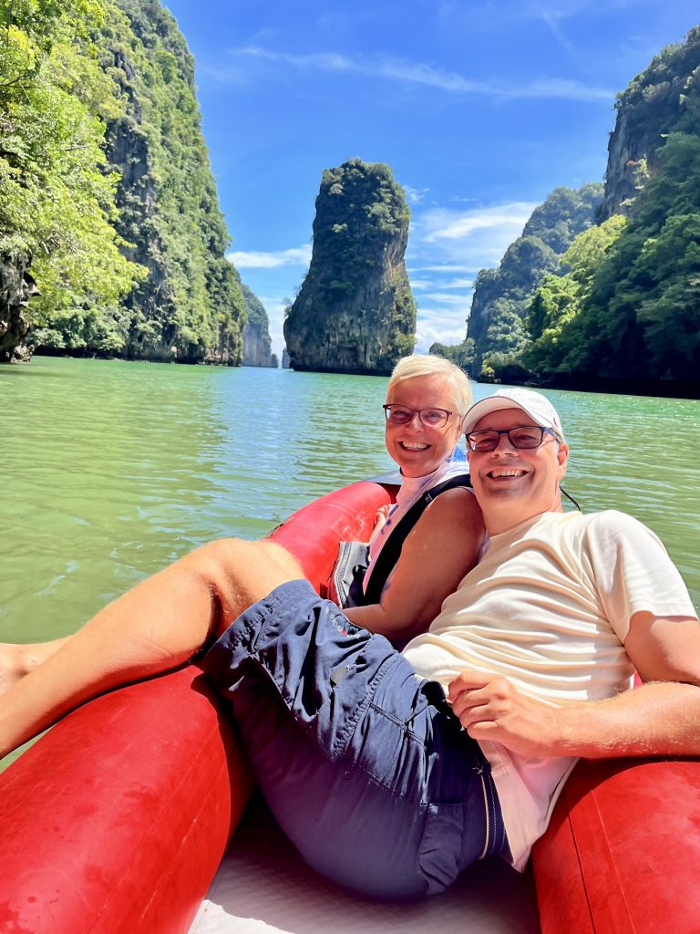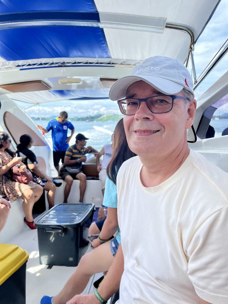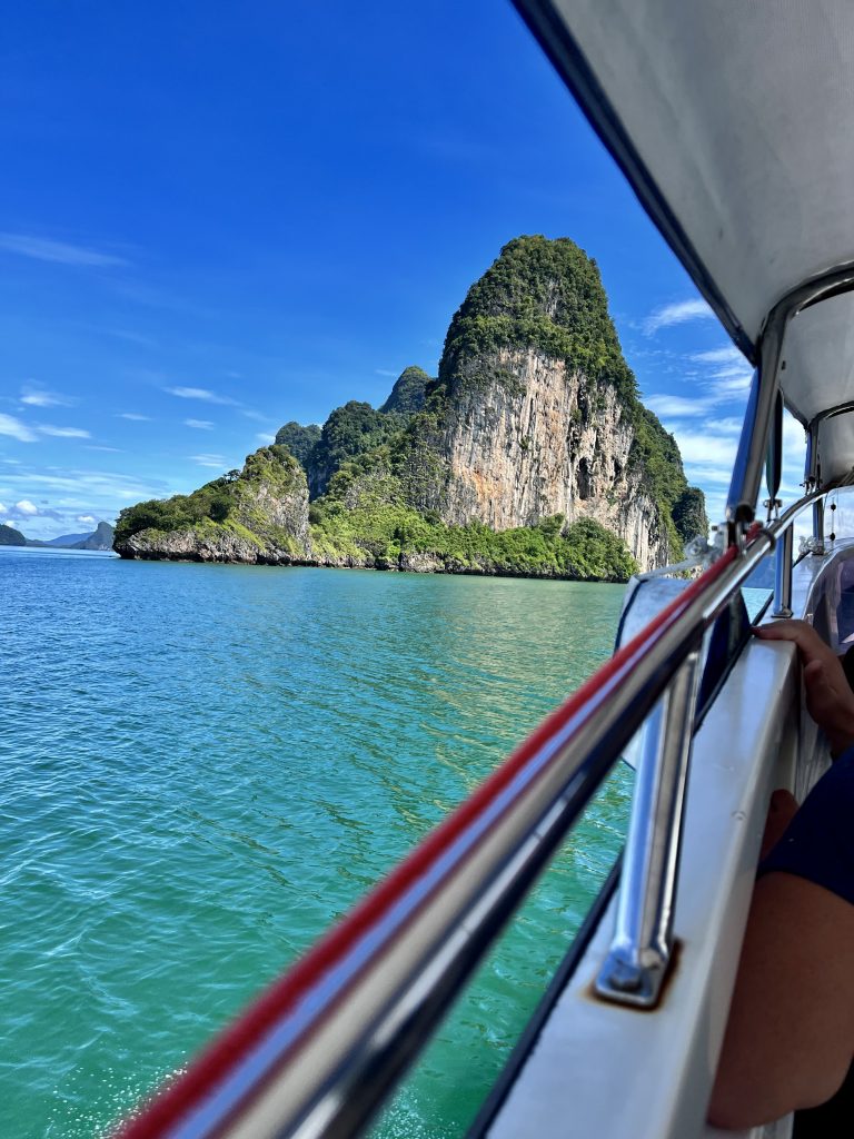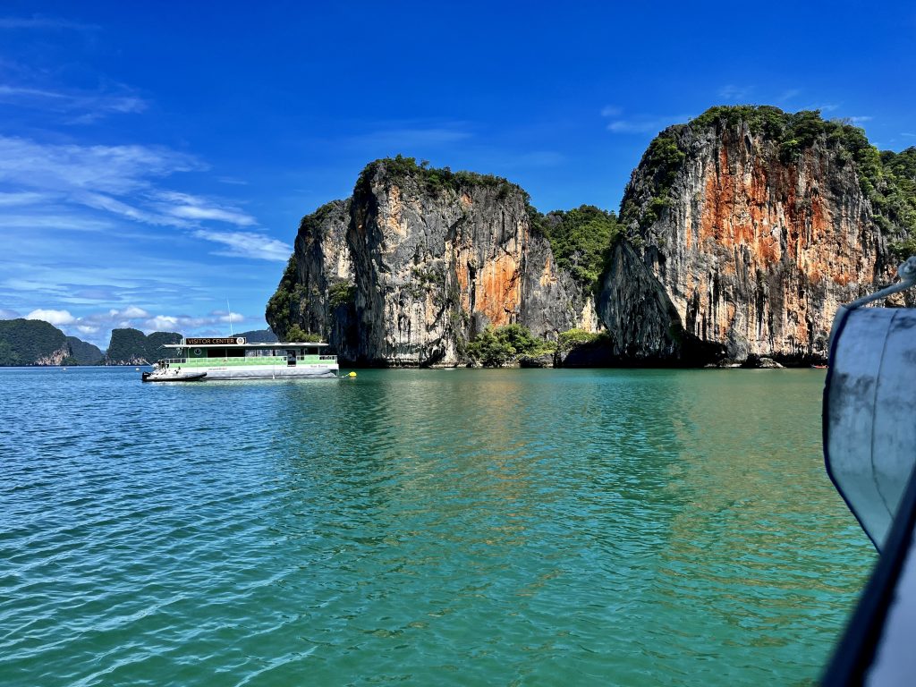 Nun sind wir wieder zu Zweit. Und wie kann man der plötzlichen Stille am besten begegnen? Genau, mit einem Abenteuer. Larissa und Norman waren echt begeistert vom Tagesausflug zur James Bond Insel, also wandeln wir auf ihren Spuren. Wir fahren ganz spontan zur Anlegestelle und fragen, ob noch zwei Plätze für das Speedboot zu haben sind? Ja! Wir werden zum Veranstalter gebracht, müssen noch etwas warten, dürfen uns am Frühstücksbuffet bedienen und lernen Mac kennen , unseren Tour Guide. Sehr nett der Mann und gut drauf! 🥳