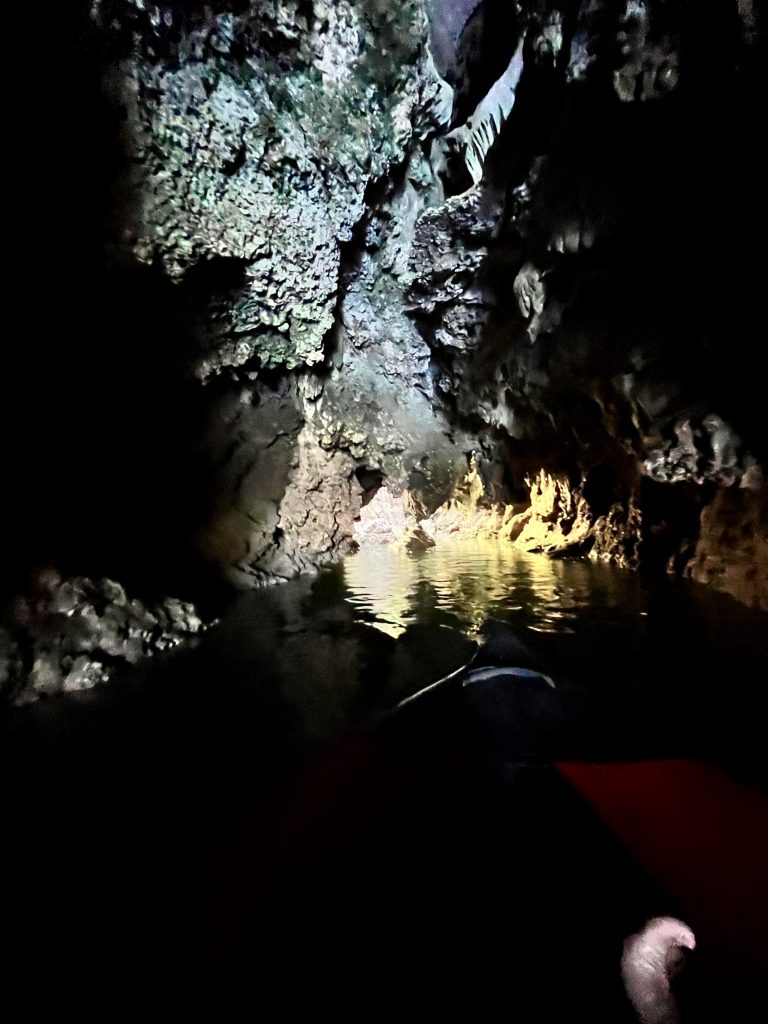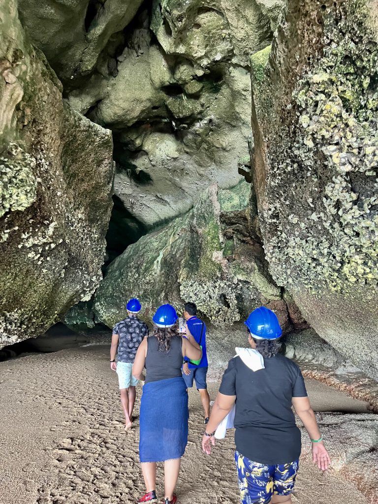 Nun geht es aber wieder weiter. Wir besuchen eine weitere Insel und machen einen Höhlenspaziergang, durch zum Teil Oberschenkel hohes Wasser.