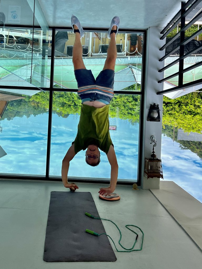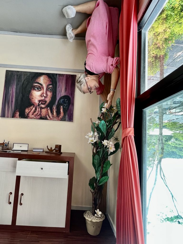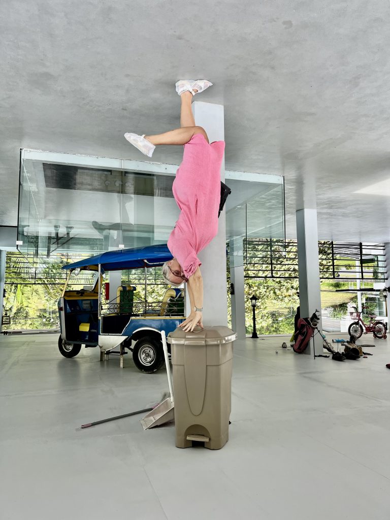 Jau, sieht zümpftig aus, war aber nur so lala… Serviert wurde das Ganze von einem hochgradig, schwulen, thailändischen Kellner. Warum erwähne ich das? Ja, es ist manchmal schon lustig, wie exaltiert da jemand auftritt. Alles nur Klischee oder Vorurteil? Hier nicht! Wir drei hatten unseren Spaß!!! Der Besitzer, ein Österreicher, kam hingegen dem Klischee des alternden Aussteigers sehr, sehr nahe. Dünne Gestalt, lichter werdendes, blondes, langes Haar, zum Zopf gebunden, verwaschene Schlabbersachen und irgendwie ein bisschen durch, der Herr…. Er war nett und verschaffte Klaus mal eben eine Privataudienz bei einem thailändischen “Heilpraktiker “, der Klaus eine Kräutermischung zum Inhalieren empfehlen sollte. Marihuana??? Hätte der gute Mann, nur eine Tür im Restaurant weiter sitzend, selbstverständlich auch im Angebot gehabt. Klaus hat sein Transpulmin vergessen, eine Paste zum Inhalieren gegen Kiefer- und Stirnhöhlenschmerzen. Ja, die haben sich nun auch bei ihm eingefunden, wie schon beim liiieeeben Schwiegersohn. Bei mir, by the way, sind die Halsschmerzen unverändert stark und peu à peu gehen meine Ohren zu. Viel höre ich nicht mehr. Shit!
