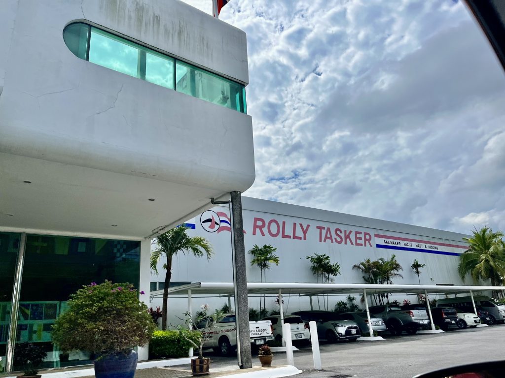 Wir gehen rein, beeindruckend muss ich sagen! Eine riesen Halle, modern, hell, sauber und total durchstrukturiert. In der Mitte liegen große Segel, am Rand rattern die Nähmaschinen. Und dann gibt’s da noch einen separierten Laden, der scheinbar alles hat, was des Seglers Herz höher springen lässt. Die nette Dame dort winkt uns heran, da wir beeindruckt, wie angewurzelt stehen geblieben sind und fragt nach unserem Anliegen. Wir zeigen ihr unser Malheur, sie nimmt sich der Sache an und ist 5 Minuten später mit unserem reparierten Side clear wieder zurück. Und was sind wir ihr schuldig, da nicht für, oder so ähnlich auf thai englisch. Happy verlassen wir diese tolle Firma und überlegen sofort, ob wir nicht noch irgendetwas anderes dort machen lassen könnten… 😉.