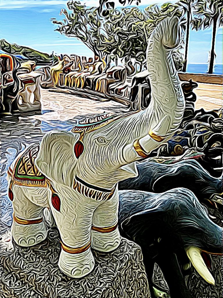 Sie bot sich gerade zu an, in ein Kunstbild verwandelt zu werden. Obwohl, der Elefant ist für die Buddhisten hier fast heilig. Er steht für Glück,Stärke, Majestät, Fleiß und Intelligenz. Nirgendwo hat der Elefant ein stärkeres Ansehen und ist hier geradezu ein Politikum. Also Obacht mit seinem Umgang!