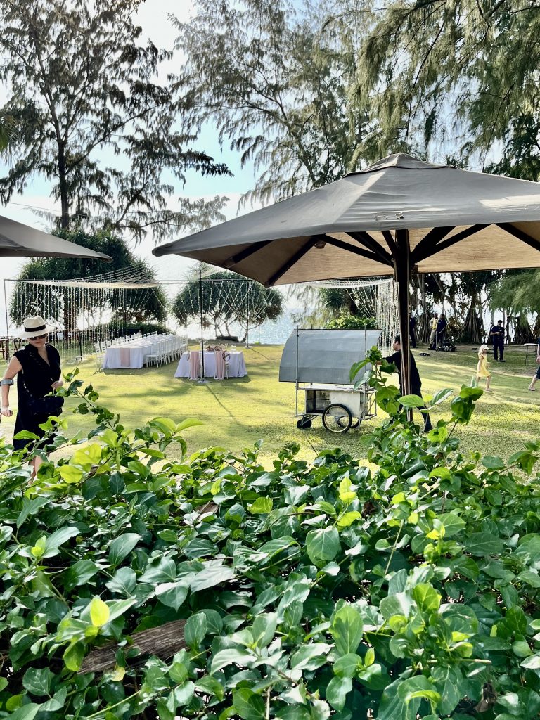 Ich genieße den Pool und beobachte die Vorbereitungen für eine am Spätnachmittag stattfindende Hochzeit.
