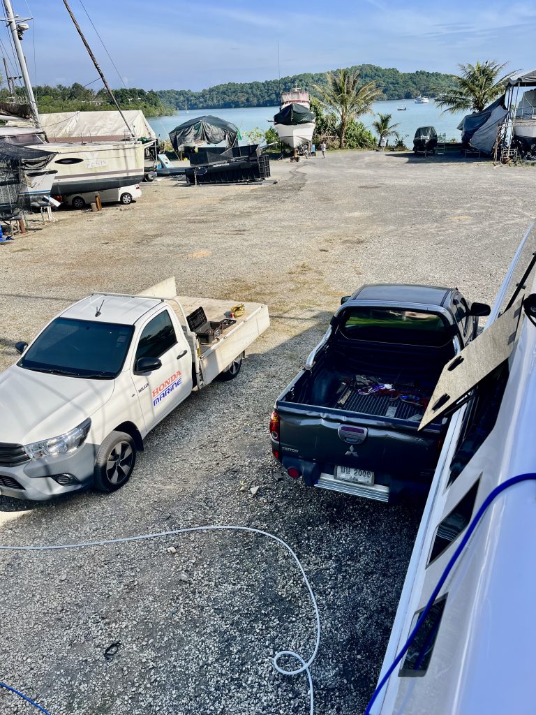 Am nächsten Tag geht es überraschend mal am Boot weiter. 👏 Gleich zwei Pickups fahren vor.