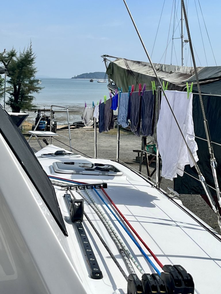 Unser Landaufenthalt neigt sich dem Ende. Wenn Toi morgen ihre « Reise » beendet hat, sprechen wir über das zu Wasser lassen. Wir nutzen die Zeit nochmal zum intensiven Putzen des Bootes, Dekorieren der Innenräumen und Waschen der Wäsche.