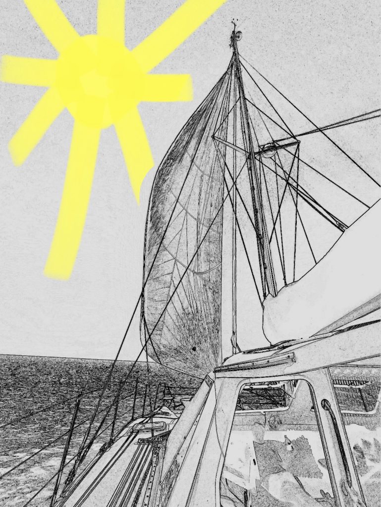 Die Frage, die jetzt aufkommt ist, sollen wir jetzt mal unser Screecher rausholen. Bei dem wenigen Wind vielleicht besser geeignet als das Gib? Wir machen das jetzt! Viele Handgriffe sind nun zu tun, aber am Ende haben wir es geschafft. Das Screecher ist draußen, das Jib eingerollt.