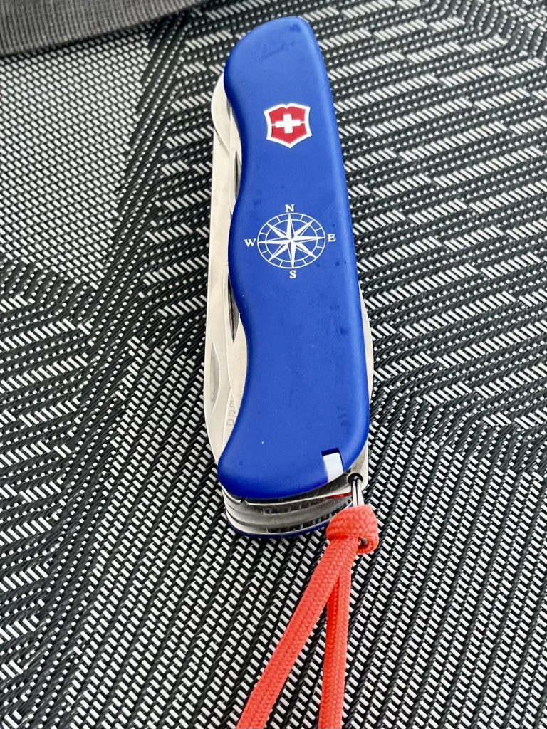 Jetzt aber abschneiden, gel? Neeeiiin! Klaus will die Leine noch von Hand vom Ruderblatt lösen. Mist, dabei habe ich das Messer, ein Geschenk von Norman und Larissa, schon bereit und fuchtel damit rum. Autsch! Und schon habe ich mir tief in den rechten Mittelfinger geschnitten. Blut tropft heraus. Manöverabbruch! Also das Messer ist verdammt scharf, das steht schon mal fest!