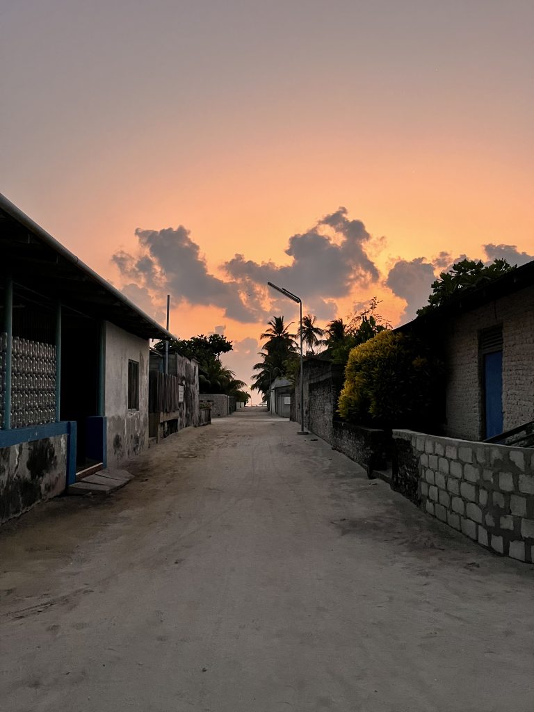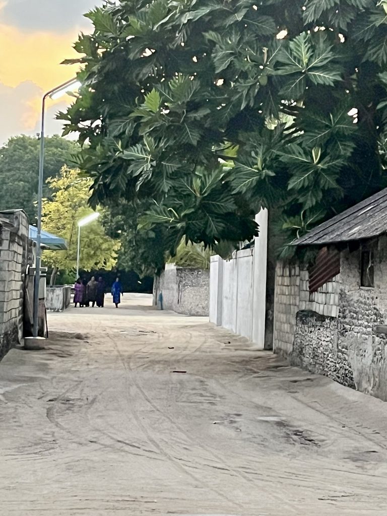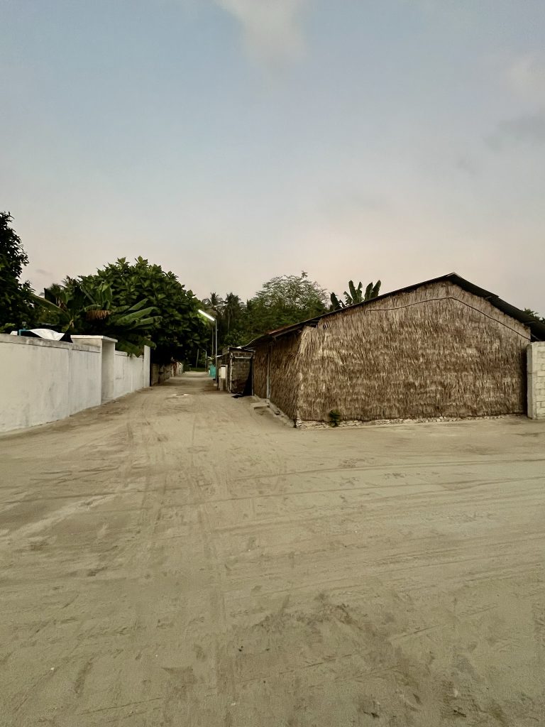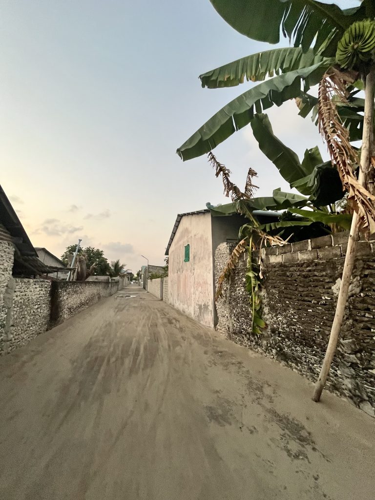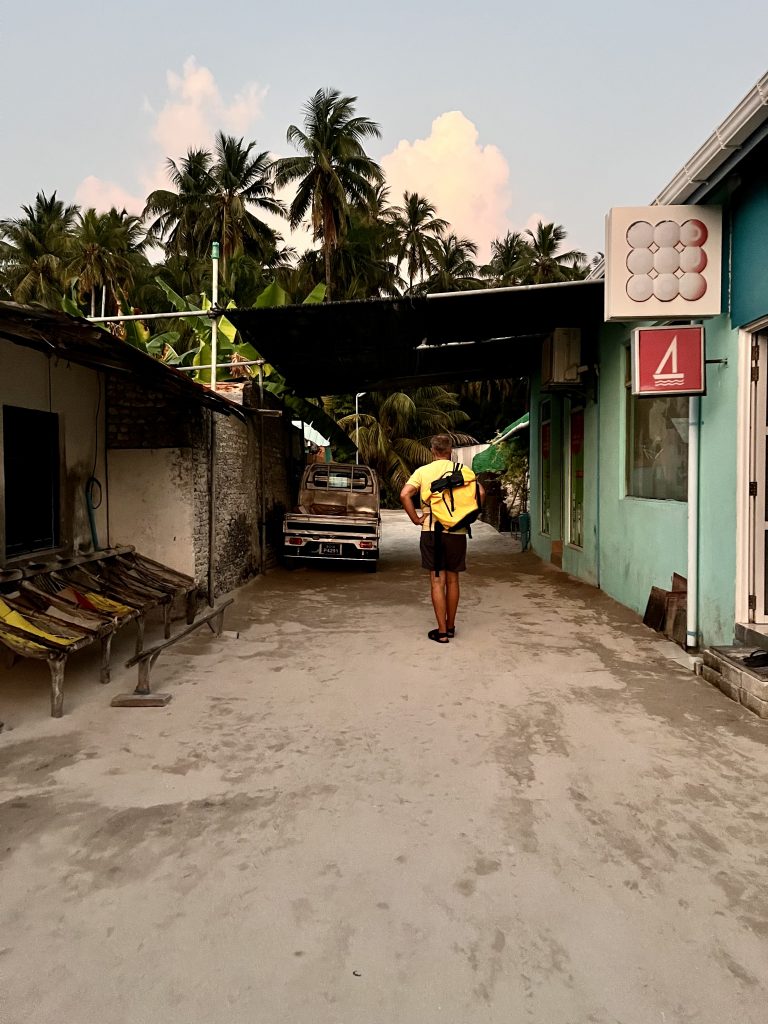 Die kurze Fahrt war ja unproblematisch, aber das Hinaufkommen ist so eine Sache. Bin gespannt, wie ich da bei Dunkelheit wieder runter komme… 🤭. So, wir haben noch ein bisschen Zeit, bevor wir uns mit Asad treffen und erkunden mal die Umgebung. Wohlgemerkt, wir sind hier auf einer von Einheimischen bewohnten Insel. Hier gibt es keinen Tourismus. 99 % der Segler kommen von Thailand, Malaysia oder eben Sri Lanka hierher, um den großen Sprung zurück nach Europa zu machen. Über das Rote Meer, Knotenpunkt Dschibuti, Sueskanal und dann ab ins Mittelmeer. Das heißt, diese Weltensegler sind am Ende ihrer Reise und fahren heim. Wir, das 1 % Prozent, fangen erst an und schippern nun von Uligan ganz im Norden, runter nach Gan, ganz im Süden. Malé, die Hauptinsel liegt so in der Mitte. Von Gan wollen wir dann den Hopser zu den Seychellen und danach den großen Sprung nach Südafrika machen. Vielleicht noch mit Madagaskar dazwischen?! So der Plan. Aber jetzt sind wir auf Uligan und staunen über die Einfachheit des Lebens hier! Lediglich Sandstraßen und -Wege führen zwischen den einfachen Häusern oder Hütten hindurch. Das Dorf ist äußerst überschaubar, die besten Gebäude sind die Moschee und die Verwaltungsgebäude.