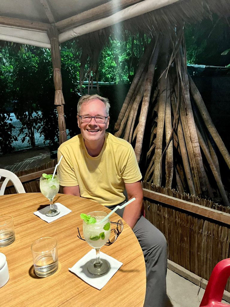 Asad suchen wir nicht mehr, der kommt mit seinem Roller angeflitzt und bestellt uns erstmal Nudeln mit Irgendwas, zwei grüne Zitronen-Limonen Cocktails und Wasser. Er selbst muss nochmal kurz weg, zum Duschen. Alles klar! Der Café Besitzer spricht kein Wort mit uns und bringt uns schweigend und langsam Getränke und Essen. Aber es schmeckt alles gut. Ein bisschen scharf, aber daran haben wir uns wohl durch Sri Lanka schon gewöhnt. Dann kommt Asad zurück vom Duschen und speist ebenfalls Reis mit Irgendwas. Wir telefonieren gerade mit Alva und Larissa und auch Asad hat sein Smartphone oft am Ohr. Er ist jung, smart und busy. Er hat unsere Pässe dabei und auch 1.500 Ruffiyaas, entsprechen 100 Dollar. Auf Kredit wohlgemerkt. Er will uns auch noch Reiseempfehlungen geben und erwähnt eine Bootsrallye, die vielleicht was für uns wäre. Dann verabschieden wir uns für heute, wollen bezahlen aber nein, wir sind eingeladen. Huch, sehr nett! Ach ja, einen in Cellophane eingewickelten Brownie teilt er auch noch mit uns, lecker 🤤! Dann geht’s zurück zur Kaimauer, wir klettern ganz vorsichtig, wie sehr alte Leute, runter ins Dinghy und tuckern mit Taschenlampe zurück zum Boot. Jetzt noch ein paar Telefonate und WhatsApps und dann fallen wir totmüde ins Bettchen.