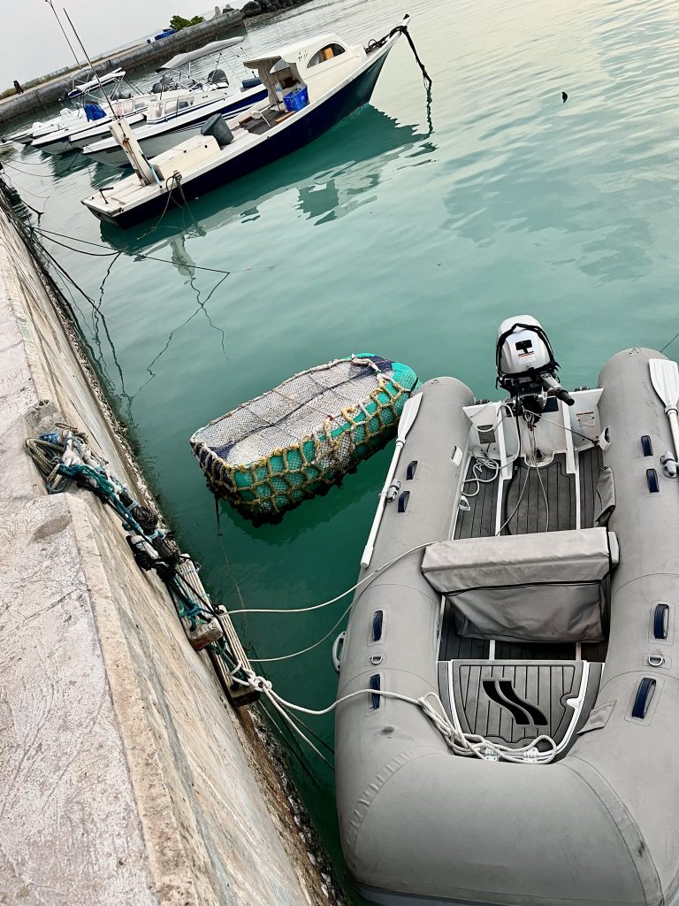Am frühen Abend fahren wir mit unserem Dinghy an Land.