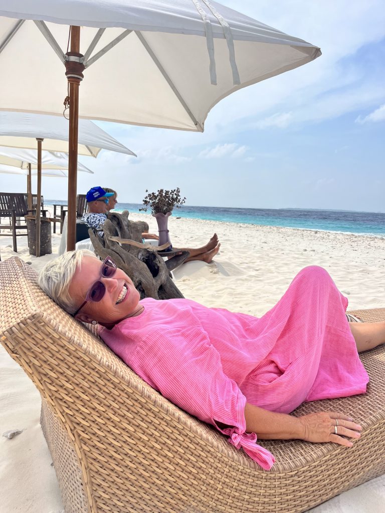 Auf dem Rückweg machen wir nochmal an den überall aufgestellten „Liegen“ und „Schaukeln“ Pause. Nashfa erzählt aus dem Nähkästchen. Wie ist das denn so mit der Vielweiberei? Bis zu vier Frauen pro Mann sind hier ja erlaubt. Ja, also, vier Frauen hat wohl keiner mehr, das ist einfach zu kostspielig. Aber zwei, das kommt schon häufiger vor. So auch ihr Vater. Ihre Mutter sei seine erste Frau und später kam dann noch eine zweit dazu. Diese bekam einen Sohn, wurde sehr krank und ihre Mutter hat dann den damals noch sehr kleinen Kerl zu sich genommen. Ihre Mutter sei überhaupt sehr, sehr großherzig und lieb. Sie liebe ihren Mann nach wie vor, aber für alle sei es bis heute eine schwierige Situation. Patchwork hoch zwei. Ob Nashfa‘s Mann wohl auch weitere Frauen haben möchte? Sie guckt entsetzt. Das ist für sie wohl eher indiskutabel. Sie sind ja auch erst ein Jahr verheiratet. Sie zeigt mir ganz viele Fotos von Tanten, Neffen und Nichten. Es scheint mir, sie ist mit der halben Insel verwandt.