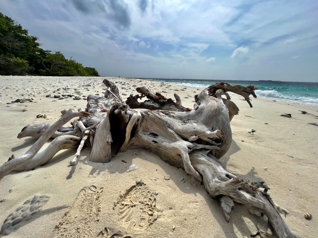 Wir laufen den Strand entlang zurück zum Zentrum. Unterwegs begegnet uns so einiges an Müll. Schade. Ich wundere mich sowieso schon eine Weile, warum uns auch im Ort und in den Straßen so viel Müll und Schrott und Bauschutt begegnet. Mich, als pingelige Westfälin stört das gewaltig. Da auch hier der Tourismus Einzug nehmen soll, hätte ich mehr Aufgeräumtheit erwartet. Nun ja, ist wohl nicht so ihr Ding. Übrigens hat jede Insel ihren Feuerplatz, wo der anfallende Müll verbrannt wird. Offen, als großes „Lagerfeuer“ sozusagen.