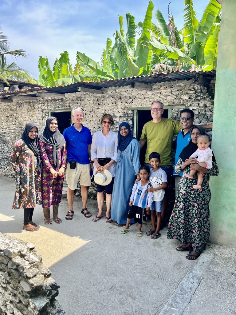 Satt sind wir trotzdem und müde obendrein. Eigentlich ist jetzt Pause angesagt, bis zur großen Abendveranstaltung. Doch wir sollen bitte auch noch das Haus ihrer Schwiegereltern und somit auch ihr Zuhause besuchen. Wird natürlich gemacht. Na da gibt’s ein großes Hallo! Zwei Schwägerinnen und ihre Kinder sind da, die leben auch alle hier. Wir bekommen leckeren Saft serviert und Obst und dann wird noch ein Gruppenfoto gemacht, ich fotografiere.