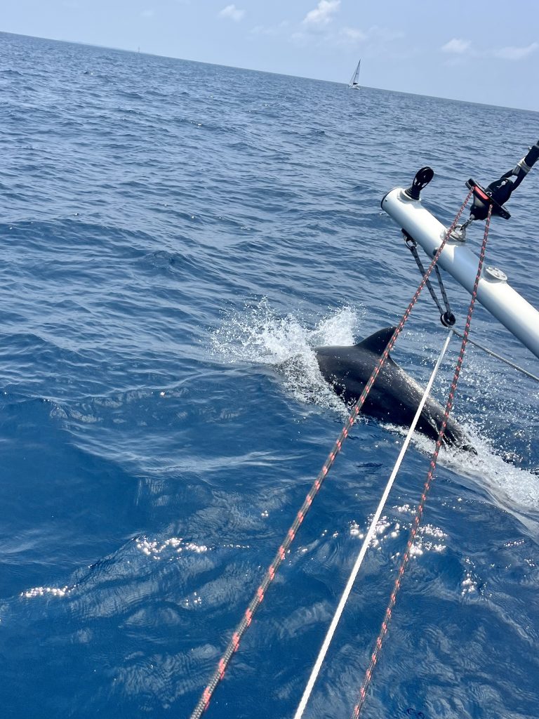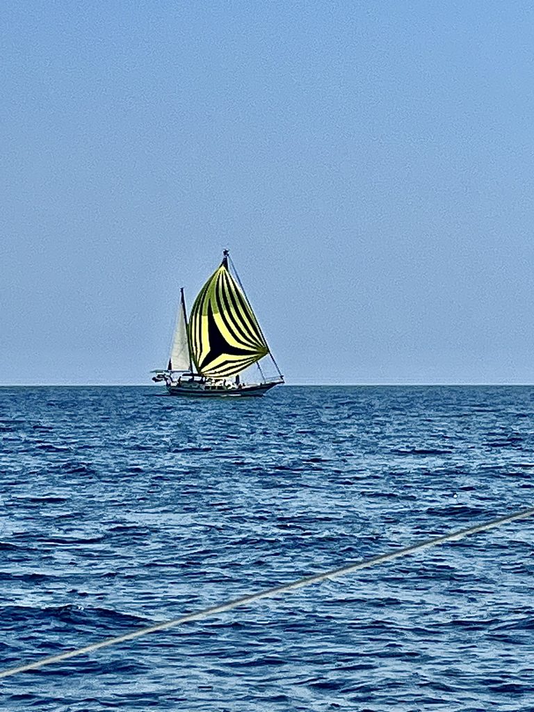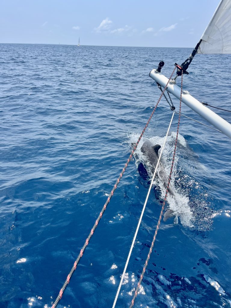 Ibrahim, mein Lieblingspolizist, zeigt uns noch wo wir ankern sollen, was wir dann auch prompt so machen. Etwas später kommt er noch mal vorbeigefahren und ruft, er wäre sehr glücklich mit uns und zeigt alle Daumen hoch. 👍👍 Ja, wir meckern nicht und halten uns an seine Vorgaben. Streber eben. 🤓 Ein tolles, langersehntes Erlebnis hatten wir noch unterwegs. Das erste Zusammentreffen mit Delphinen an unserem Boot. Bestimmt eine viertel Stunde schwammen sie mit uns um die Wette. Herrlich❣️Sie gewannen natürlich haushoch. 😁