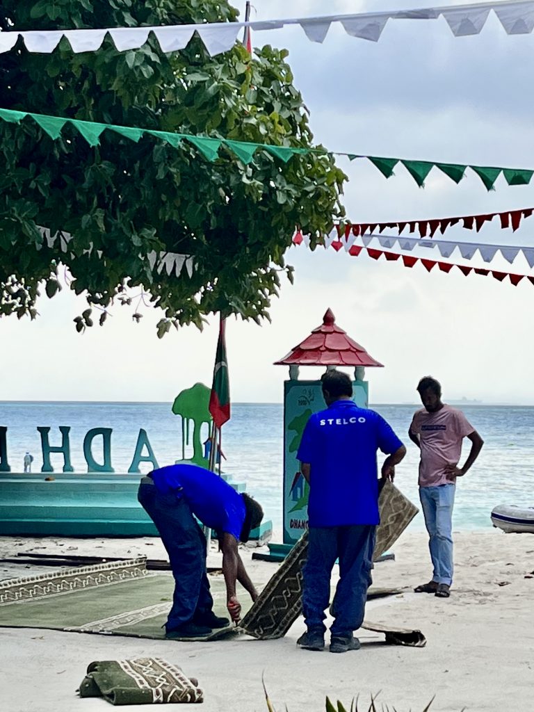 Die Sonne geht auf, ein neuer Tag beginnt und wir haben heute frei! Kein Segeln, kein Welcoming (das gibt’s erst morgen) kein gar nichts. Fast! Um 16:30 Uhr sollen wir uns zum Interview auf der Insel einfinden. Das Filmteam möchte alle Segler zur Rallye und zu den Malediven befragen. Okay!