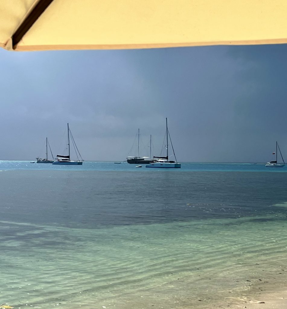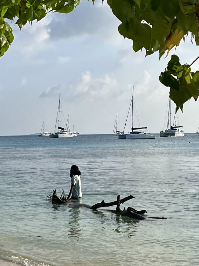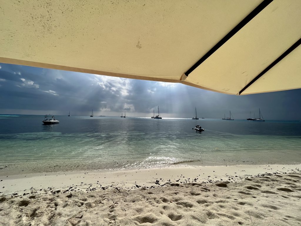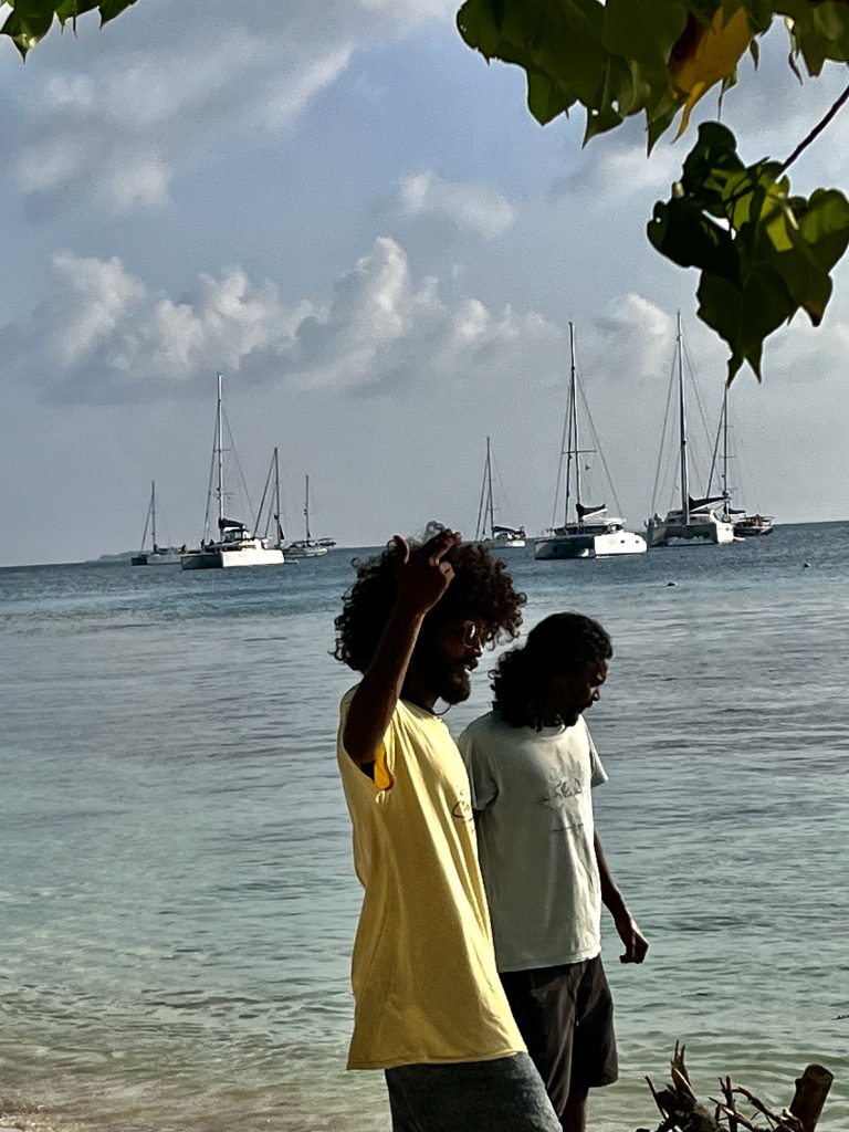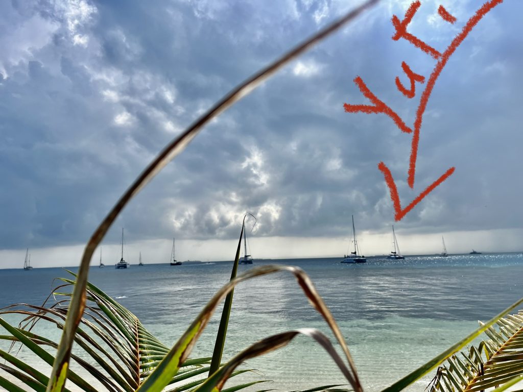 Wir laufen zurück zum Dinghy und wer sitzt auf dem Steg genau davor? Ibrahim und Kollegen. Was war passiert? Wir haben unser Dinghy so fest gemacht, dass bei Änderung der Windrichtung das Heck samt Motor gegen den Betonpfeiler des Steges schepperte. Mit der Folge tiefer Kratzer am Motor. Shit! Ibrahim hat’s gesehen und sich mit seinen Leuten hingehockt um weiteren Schaden zu verhindert. Die haben bestimmt ne Stunde oder mehr dagesessen und aufgepasst. Was soll man dazu sagen? Auch dafür fühlt sich die Marinepolizei verantwortlich. Unglaublich! 🥰 Wir tuckern zurück, etwas beschämt, aber wieder um eine Erfahrung reicher. Na dann bis morgen, zur großen Begrüßung.