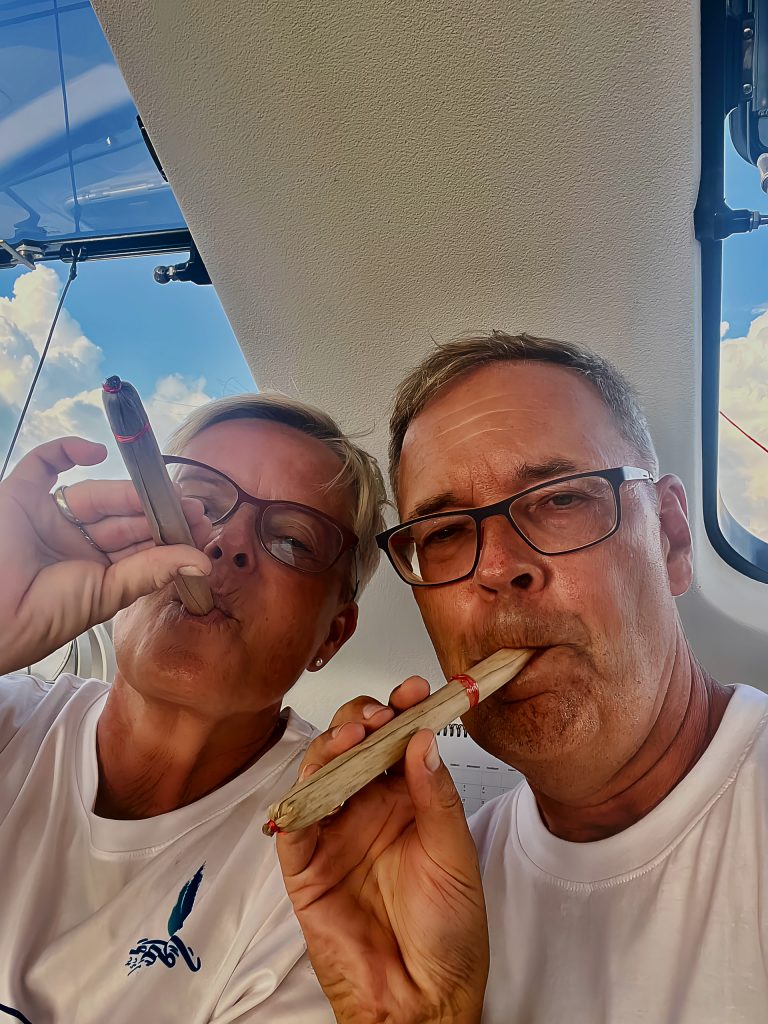 Es ist 11:00 Uhr, die Österreicher kommen. Hubert und Margit mit ihren Freunden Manfred und Gabi. Wir mögen die sehr und machen an Land fast alles gemeinsam. Es ist oft sehr lustig, wir können Deutsch sprechen, hier und da ein ganz kleines bisschen gemeinsam lästern und viel von ihnen lernen, da insbesondere Hubert und Margit schon seit vielen Jahren die Weltmeere besegeln. Wir haben sie eingeladen, unser Boot zu inspizieren. Sie möchten doch zu gerne hinter das Geheimnis unserer Schnelligkeit kommen. 😛 Irgendwie stehen wir im Fokus der allgemeinen Aufmerksamkeit. Tristan, der Brite meint, wir kämen von einem anderen Stern. Dennis, der Ami, will unsere Segel 😳 und zwei weitere Engländer wären glücklich, wenn sie sich unser Boot anschauen dürften. Sie hätten sich schon ausführlich über Seawind informiert.