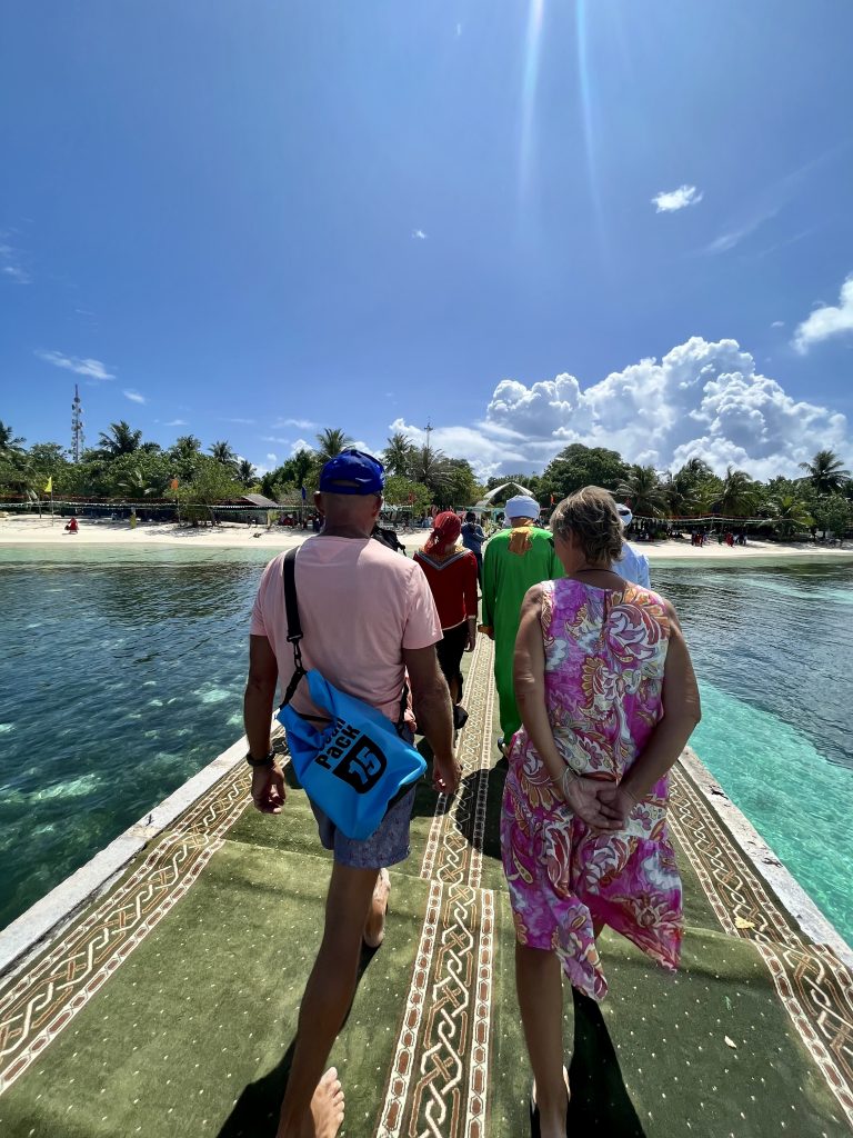Eigentlich war ja der Plan, von hier zu den beiden nicht weit entfernten Inseln mit dem Speedboat gebracht zu werden. Aber Dihgurah, die Insel von morgen ließ verlautbaren, entweder wir kommen mit allen Booten, oder wir können uns das Welcoming und Co. in die Haare schmieren. Oder so ähnlich… Also heißt es morgen Anker lichten und 45 Minuten rüber nach Dhigurah schippern.