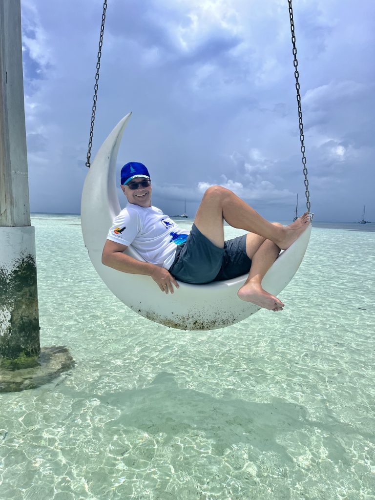 Das Buffet ist in der großen Turnhalle aufgebaut und wird eröffnet. Immer wenn ich mir etwas holen möchte, läuft er mit und will mir alle Speisen erklären. Dann laufe ich halt nicht mehr … 🤐. Hubert lästert schon, ich sei viiiel zu freundlich. Naja, was soll ich da unfreundlich sein, morgen geht’s ja schon weiter, zur nächsten Insel. Deshalb wird gleich auch noch ein Skippermeeting abgehalten. Das nutzt Ibrahim, kommt an unseren Tisch und sagt, er sei traurig. Traurig, da wir morgen schon wieder weg seien. Er möchte so gerne meine Handynummer. Was mach ich da nur? Ich geb sie ihm, kann ihn ja später wieder blockieren. So ein Stress mit die Männer…. 🙄. Skipper sind fertig, es geht zum Schnellboot und weiter auf unsere Segelboote. Geschafft! 😮💨