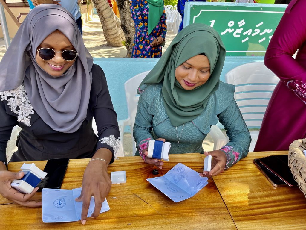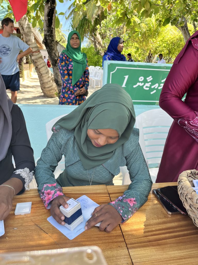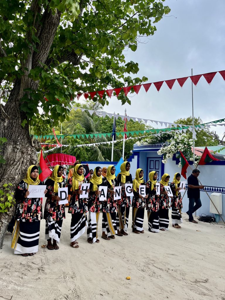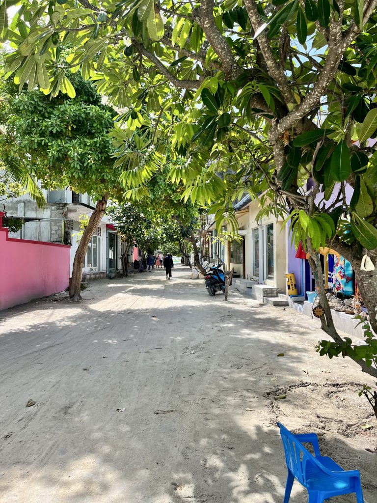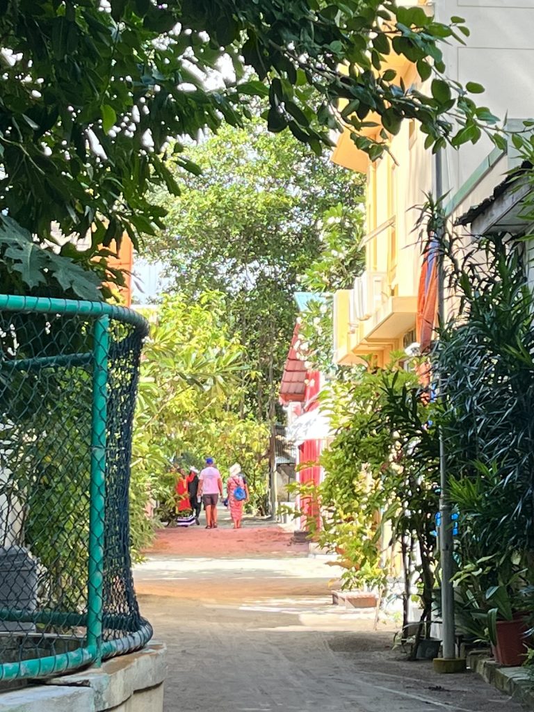 Neben Rasdhoo, ist Dhangethi die zweite Insel, die sauber und aufgeräumt daher kommt. Ich las kürzlich, das seit eh und je das Pflegen der Inseln in den Händen der Frauen liegt. Na, die Hände hier sind fleißig!