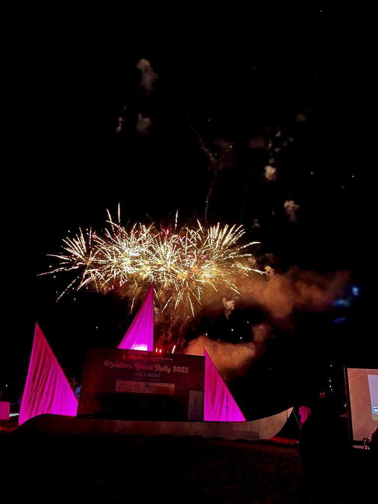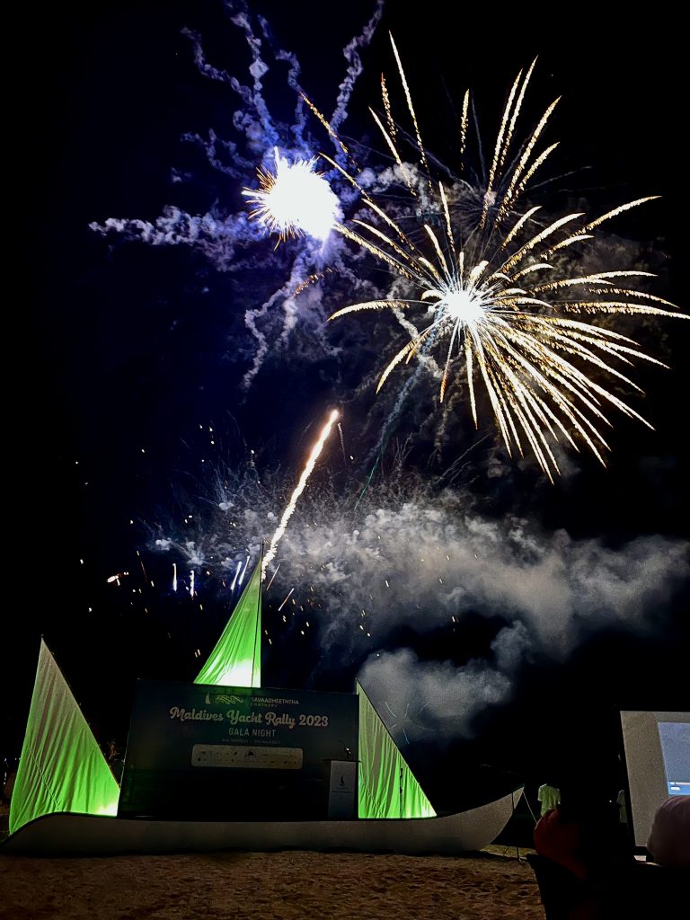 Traditionelle Tücher, ein kleines geschnitztes Dhoni (trad. Segelboot), Teilnehmerurkunden und ein Stick mit über 1.000 Fotos werden feierlich an uns übergeben. Jetzt aber startet ein dolles Feuerwerk und beschließt dieses große Spektakel.