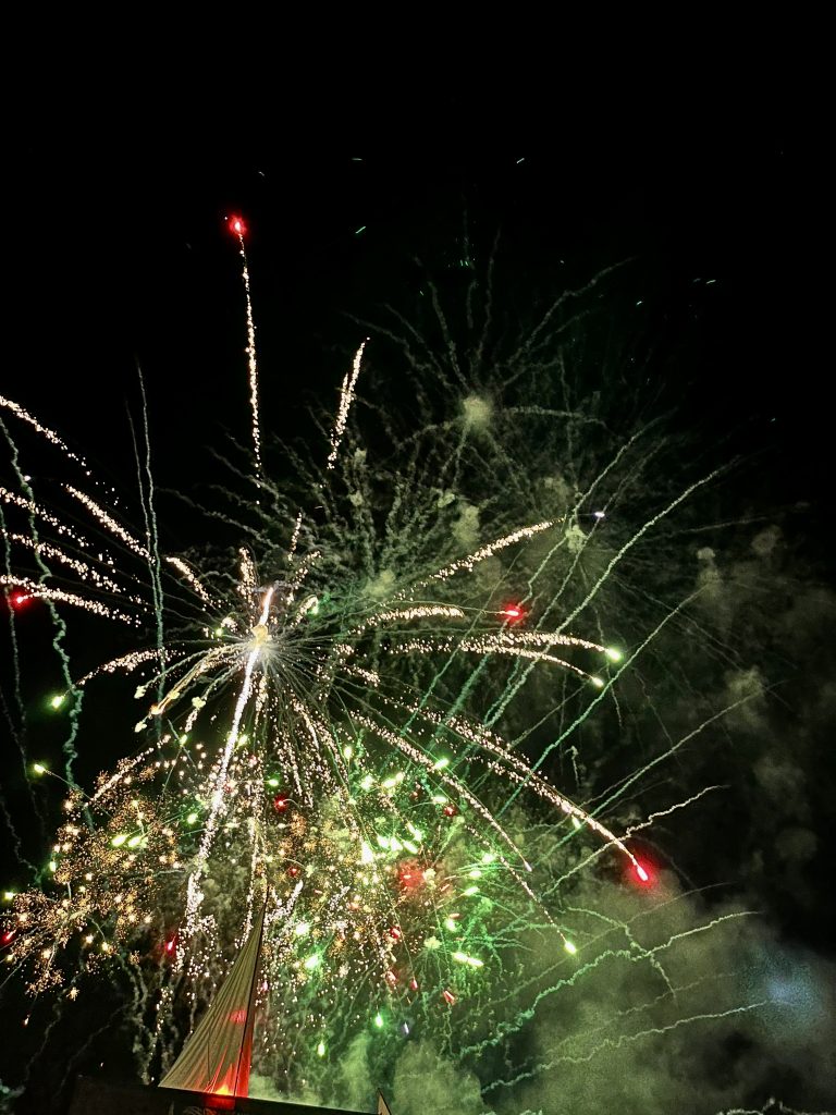 Die dollsten Feuerwerkskörper erzeugen so riesige Funkelsterne, das kann ich gar nicht fotografieren. Übrigens, das gesamte Dorf ist auf den Beinen und steht mit Abstand um uns herum. So etwas will sich niemand entgehen lassen!