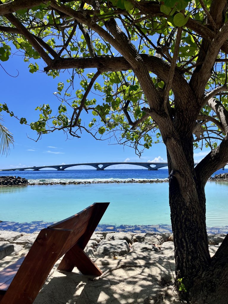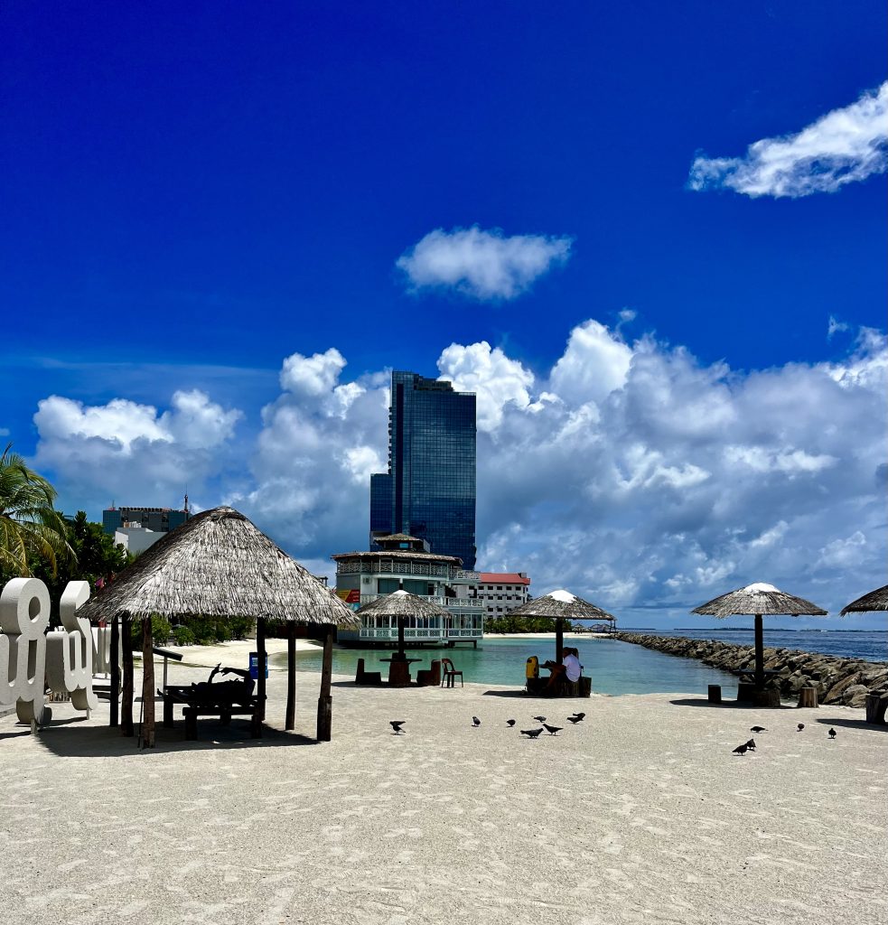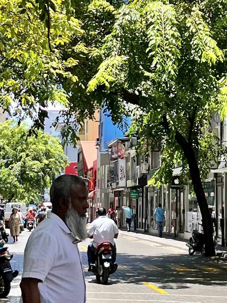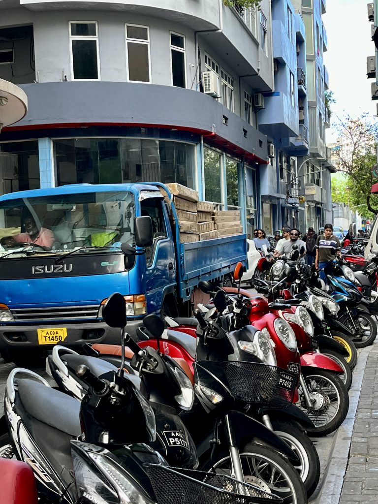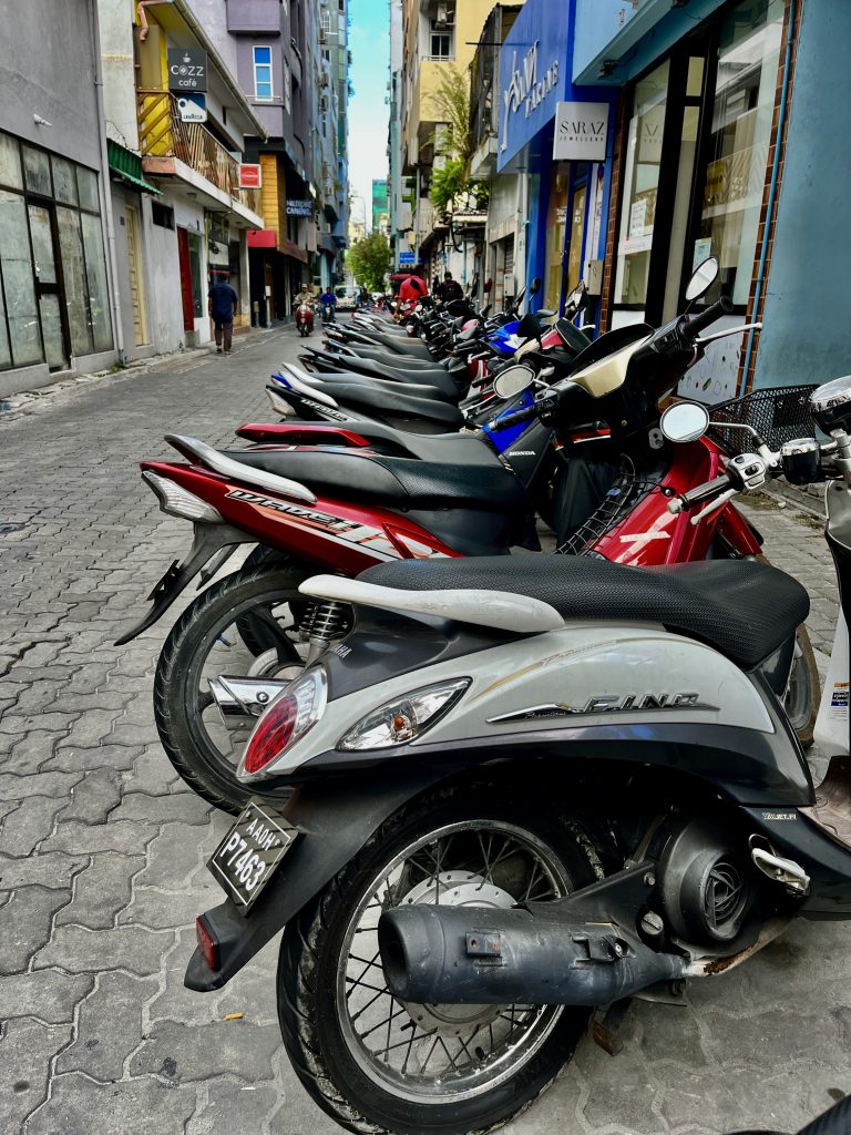 Malé ist mittlerweile die am dichtesten besiedelte Stadt der Welt. Die Idee mit den Resortinseln kam 1972 auf und auch auf den Local Islands ist die rasante Entwicklung nicht aufzuhalten. Eben noch in Palmenhütten lebend, werden heute Gästehäuser am laufenden Meter hochgezogen, wurden alle bewohnten Inseln mit Strom und fließendem Wasser versorgt und Internet zur Verfügung gestellt. Das gesamte Staatsgebiet der Malediven ist internetmäßig voll abgedeckt. Und Deutschland? Internet auf dem Land? Internet auf unseren Autobahnen?? Naja, hier gibt‘s zwar keine Autobahnen, aber selbst auf der kleinsten bewohnten Insel, haben gefühlt alle einen fahrbaren Untersatz, Roller, Moped, Motorrad oder Lastendreirad, kleine Transporter sind auch dabei, manchmal auch Autos. Aber der Unterschied vom Leben auf einer Einheimischeninsel, zum Leben auf Malé, ist gigantisch. Hier auf Malé steppt der Bär. Hier gibt es Arbeit, weiterführende Schulen und eine Uni und gute Krankenhäuser. Hier sitzt natürlich die Regierung und alle übergeordneten Ämter des Landes. Aber auch Kriminalität und Drogen aller Art sind hier zu Hause. Wie halt in jeder großen Stadt, weltweit. Auffällig viele Männer dominieren das Straßenbild. Deren Frauen und Kinder sind oftmals auf den Heimatinseln zurückgeblieben, da das Leben auf Malé viel zu teuer ist. So ja auch bei Ibrahim, unserem Marinepolizisten. Man sieht sich einmal im Jahr, zeugt ein weiteres Kind und zwitschert wieder ab. 😝 Was mir auch auffällt, sind die vielen kleineren Moscheen überall in der Stadt,