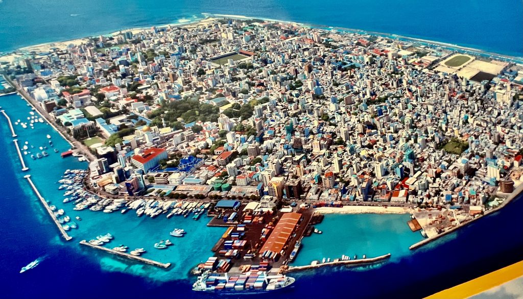 Klar, es wird ja auch 5 Mal am Tag gebetet, und da darf der Weg nicht zu weit sein. Die wenigen Frauen die ich sehe, sind oft voll verschleiert und in schwarz. Der Islam in strenger arabischer Ausführung wird hier sehr ernst genommen. Vieles wurde von Katar oder den Vereinigten Arabischen Emiraten finanziert und so haben sie überall einen Fuß in der Tür und nehmen deutlich Einfluss auf die maledivische Gesellschaft. So versuchen sie die Vollverschleierung durchzusetzen, Frauen in die Bedeutungslosigkeit zu drängen, Tänze und Gesang zu ächten. Bisher konnten sich die Fundamentalisten nicht voll durchsetzen, da vieles nicht der Kultur der Malediver entspricht. Aber finanzielle Abhängigkeiten sind gefährlich. Wie man jetzt auch bei den Chinesen sehen kann, was Abhängigkeiten von ihnen weltweit bedeuten kann und wird…