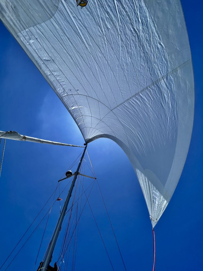 Um 10:00 Uhr heben wir den Anker und verlassen total glücklich diesen Ort, um Kurs auf Dhangethi zu nehmen. Es ist fast windstill, aber mit unserem Screecher kommen wir ganz gemütlich, mit 3 Knoten Speed over ground, voran.