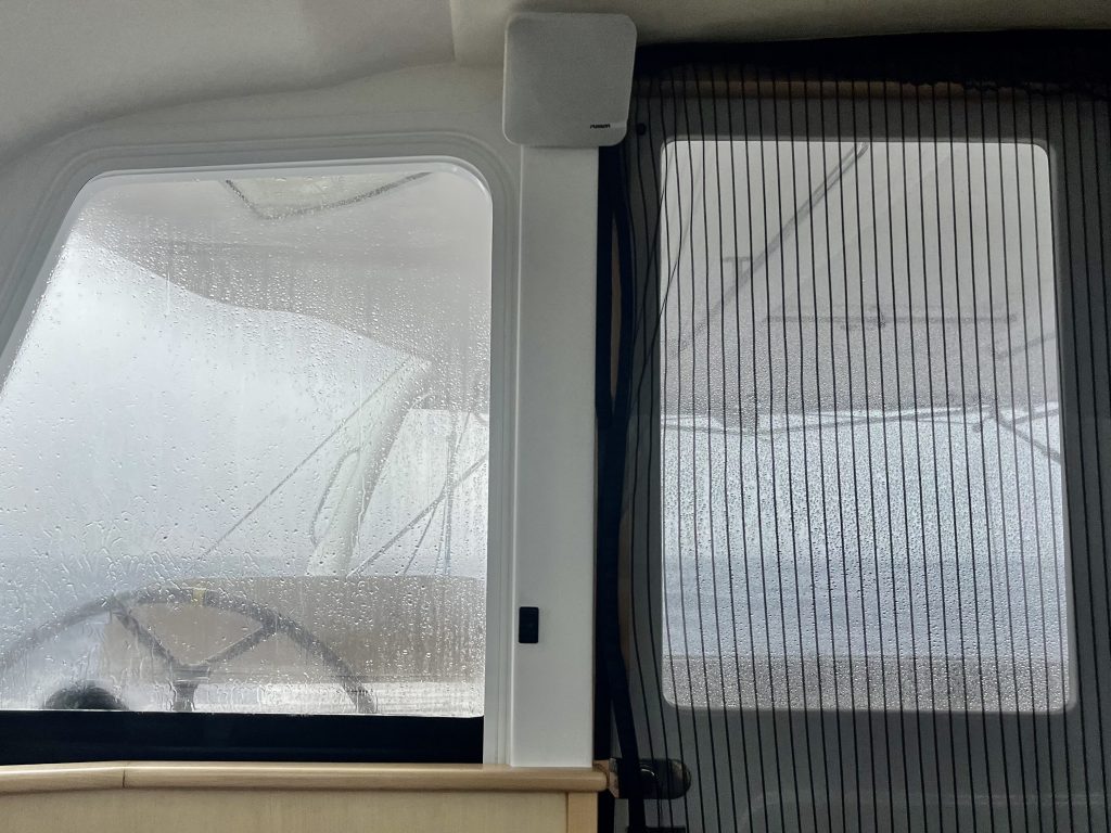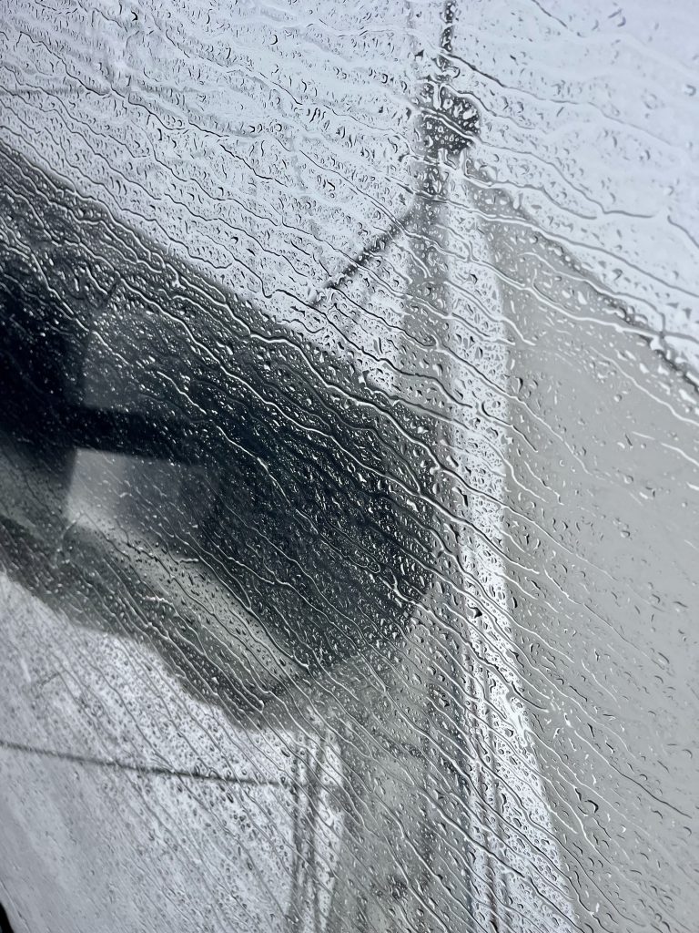 Ich bin gerade wiedermal auf der Toilette, da höre ich, wie eine Riesenwelle seitlich über das gesamte Boot geht. (Nein, meine Toilettenluke ist nicht offen!) Sie flutet das gesamte Cockpit. Ich höre die Wucht dieser Welle, Klaus ‘Ohhhhh’ und befürchte, dass sie bis in den Salon geschwappt sein könnte… Nein! Zum Glück nicht, und Klaus war auch nicht draußen. 😅 Aber das ein oder andere macht da schon mal den Abgang. Zum Beispiel ist die gesamte Werkzeugkiste auf den Boden geknallt und hat sich entleert. Genau da, wo mir der Hammer ins Holz geschlagen ist. Auweia 🫣. Aber, oh Wunder, es gibt keine weiteren Macken. Stattdessen tritt Wasser durch den Abfluss in meinem Bad, ein. Darf das das? Vielleicht drücken die kräftigen Wellen hoch? Beobachten!!