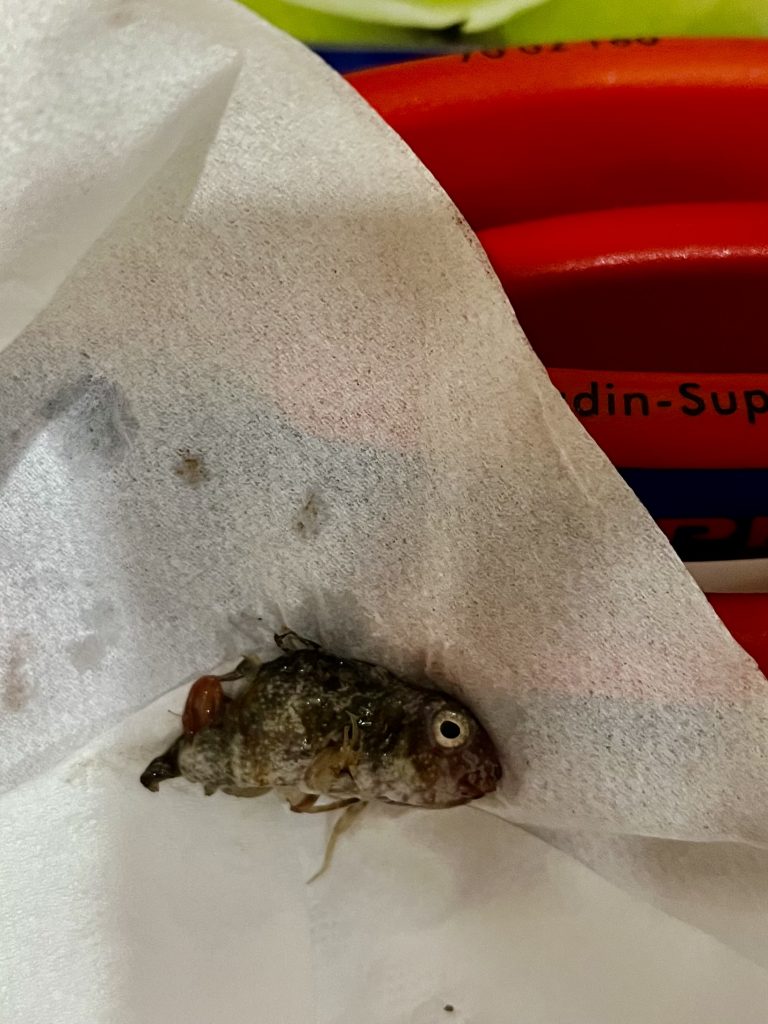 Ein Fischlein! Der hat wohl am Wassereinlass geschnuppert, als Klaus gerade die Spülung betätigte und zack, war er drin… Nun geht wieder alles und Klaus kann wieder aufs Klo. Ein Glück!!! Sonst hätten er ja meines benutzen müssen… 😳.