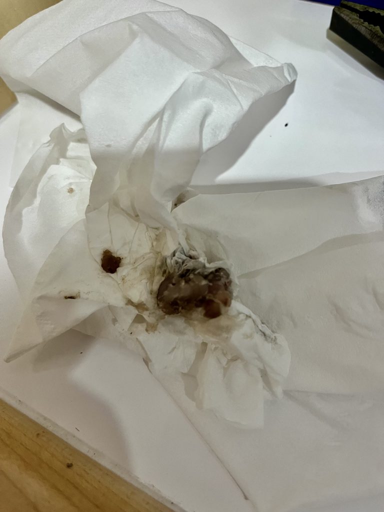 Es geht aber nicht raus, ich rutsche ab und habe Gewebe zwischen den Fingern. Iiii, was ist das?