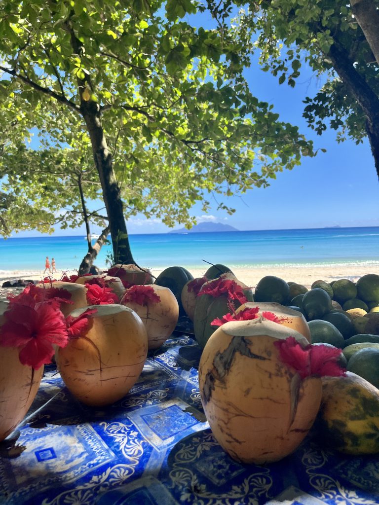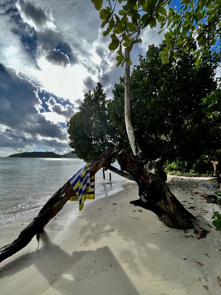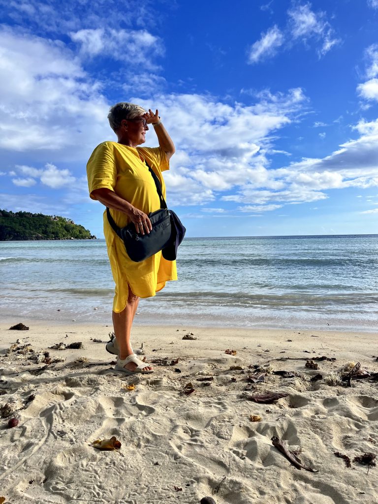 Nun geht’s an den Strand und zwar an DEN Strand. Beau Vallon ist sein Name und einer der schönsten soll er sein. Wir wandern zur Bushalte. Irgendwie können wir nicht genug bekommen, vom Busfahren. Es ist immer ein bisschen wie Achterbahn fahren … 😂 Der wahre Grund ist, es ist super günstig und kommt Klaus Sparbrötchen gerade recht. Apropos Sparbrötchen… Wir haben heute mit Keith gesprochen und ja, er macht uns ein Schreiben für Janek 😅 und über die Liegekosten für Yuti wurde auch nochmal beratschlagt. Zwischenzeitlich haben wir ein Angebot vom Bootsclub bekommen, für unsere gesamte Liegezeit hier, welches unsere Kosten dritteln würde. Nur das Thema Sicherheit wäre dort ein Knackpunkt. Jeder der mag, hat Zugang zu den Booten. Das ist hier, in der Marina anders. Hier gibt es ein Sicherheitsteam, welches schon schaut, wer ein- und ausgeht. Doch Keith bleibt hart. Er kann uns keinen Monatsvertrag geben, da wir ja nur bis auf Weiteres hier sein dürfen. Und die Berechtigung, die täglichen Gebühren runter zu setzen, habe er nicht. Hm… Wir zeigen Verständnis und schauen uns tief in die Augen. Plötzlich geht was. Warum auch immer? Wir bekommen einen Monatsvertrag, mit dem Zusatz, dass wir bei Bedarf den Platz räumen müssen. Okay. So haben wir mit einem Schlag unsere Marinakosten mehr als gedrittelt. Fantastisch!!! Und jetzt ist es für uns schon viel günstiger, als zum Beispiel in Kroatien. Klaus ist sowas von happy! Ich auch! 😁 Nun aber los, ab in den Bus und wir lassen uns bis Beau Vallon rüttelnd und quietschend chauffieren.