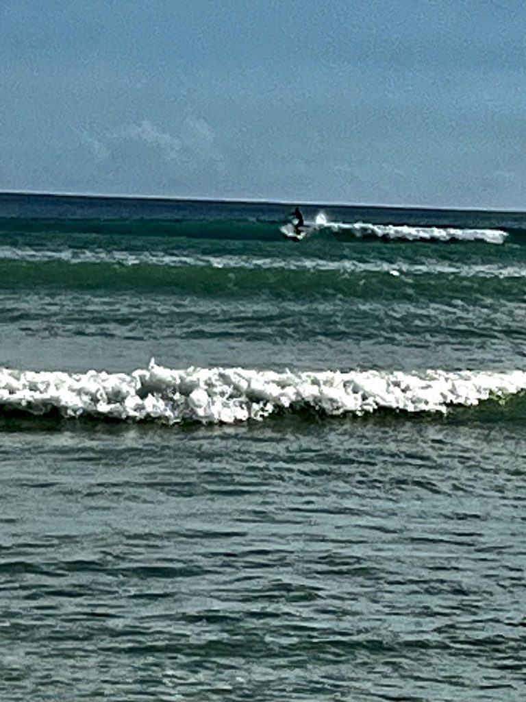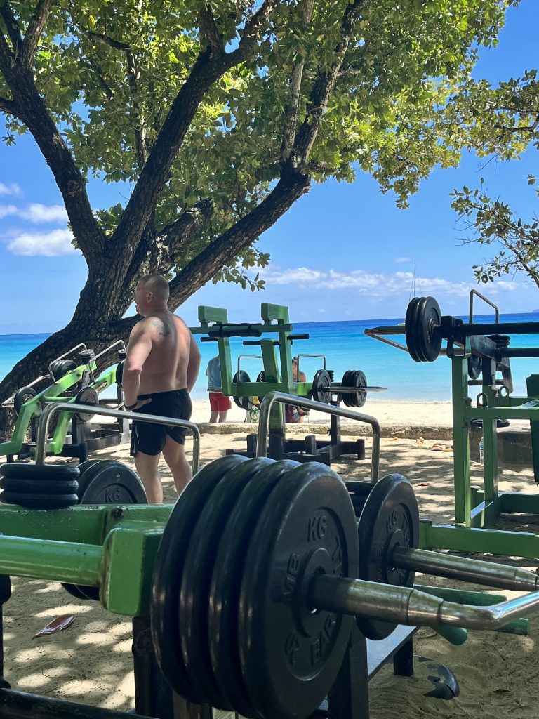 Dann gibt es eine kleine Promenade, mit Futterständen und Strandsouvenirs, sowie mehrere Tourenanbieter für Taucher, Schnorchler und Inselhopper. Dann geht’s zurück zu unseren Liegestühlen, ausruhen… Klaus geht schwimmen, ich gehe schwimmen, ausruhen…