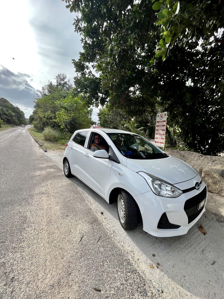 Nächster Tag. Wir besuchen den großen Hypermarché nahe Victoria. Lage peilen und etwas Wasser einkaufen… Na, wenn das mal nur bei Wasser bleibt? Wer‘s glaubt wird selig. 🤭 Da gibt’s aber auch ein Brillengeschäft, und meine rötliche Brille hat ein gebrochenes Bügelgelenk und rutscht mir im Gesicht herum. Blöd! Also hin zum Optiker. Zwei junge Frauen nehmen sich der Sache an und kommen mit abgeschraubtem Bügel zurück. Sie können ihn nicht reparieren. Ups, ein neues Brillengestell könnte ich mir ja aussuchen… Au Backe, meine teuren, neuen Gleitsichtgläser einschleifen lassen??? Hm… Dann verstehe ich erst, dass sie mir neue Bügel dran machen könnten. Ja, das finde ich gut. Sie zuckeln ab und wir warten. Nach ner Dreiviertelstunde kommt ein weißer, schlanker Mann, etwas jünger als wir und spricht uns in perfektem Deutsch an. Was eine Freude! Er präsentiert mir das Ergebnis: Pinkfarbene Riffelblechbügel, nicht ganz der Mauveton des Gestells, aber okay. Die Brille sitzt wieder bombenfest und der Herr aus Deutschland passt noch alles perfekt an. Für sage und schreibe 10 ,- Euro, toll!! Wir kommen ins Gespräch… Erst ging er mit seinem Chef vor 25 Jahren nach Namibia und dann auf die Seychellen, wo er seit über 20 Jahren mit Familie lebt. Das Geschäft hat er dann von seinem Chef übernommen und noch vier weitere in der Region eröffnet. Eine deutsche Erfolgsgeschichte auf den Seychellen! Sehr sympathisch der Mann. Klaus will auf jeden Fall mit seiner Brille, die nach der Dinghyfahrt unter Yuti hindurch auch nen Schlag weg bekommen hatte, ebenfalls zu ihm! Ach, übrigens, wir haben uns ein Auto gemietet. Den günstigsten Kleinwagen ohne Automatik den es gab. Tadaa …