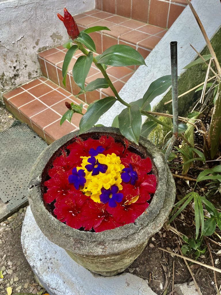 Die Tochter malt sehr blass und verwaschen, der Sohn betont seine Gemälde mit Goldelementen. Ich find’s etwas kitschig. Die Frau des Hauses, Mitte 70, lässt sich blicken und begrüßt uns freundlich. 51 Jahre leben sie nun schon hier, auf den Seychellen. Früher wäre aber alles besser gewesen, meint sie. Kaum Besiedelung, nur drei Hotels, keine Handys, kein Internet, kaum Verkehr, dafür Ruhe, Natur und Idylle. Jau, die ist dann wohl weg… Direkt vor ihrem Haus wird die Straße ausgebaut und zwei neue Bushaltestellen gezimmert. Ansonsten ist es hier schon recht einsam. Wir sind ne halbe Stunde dort, dann schnappen wir uns den Bus zurück, der hier auch nur stündlich verkehrt. Kurzes Resümee, der Besuch lohnt sich nicht wirklich. Auf der Rückfahrt hat Marlene einen süßen Flirt, mit einem sehr jungen Mann…